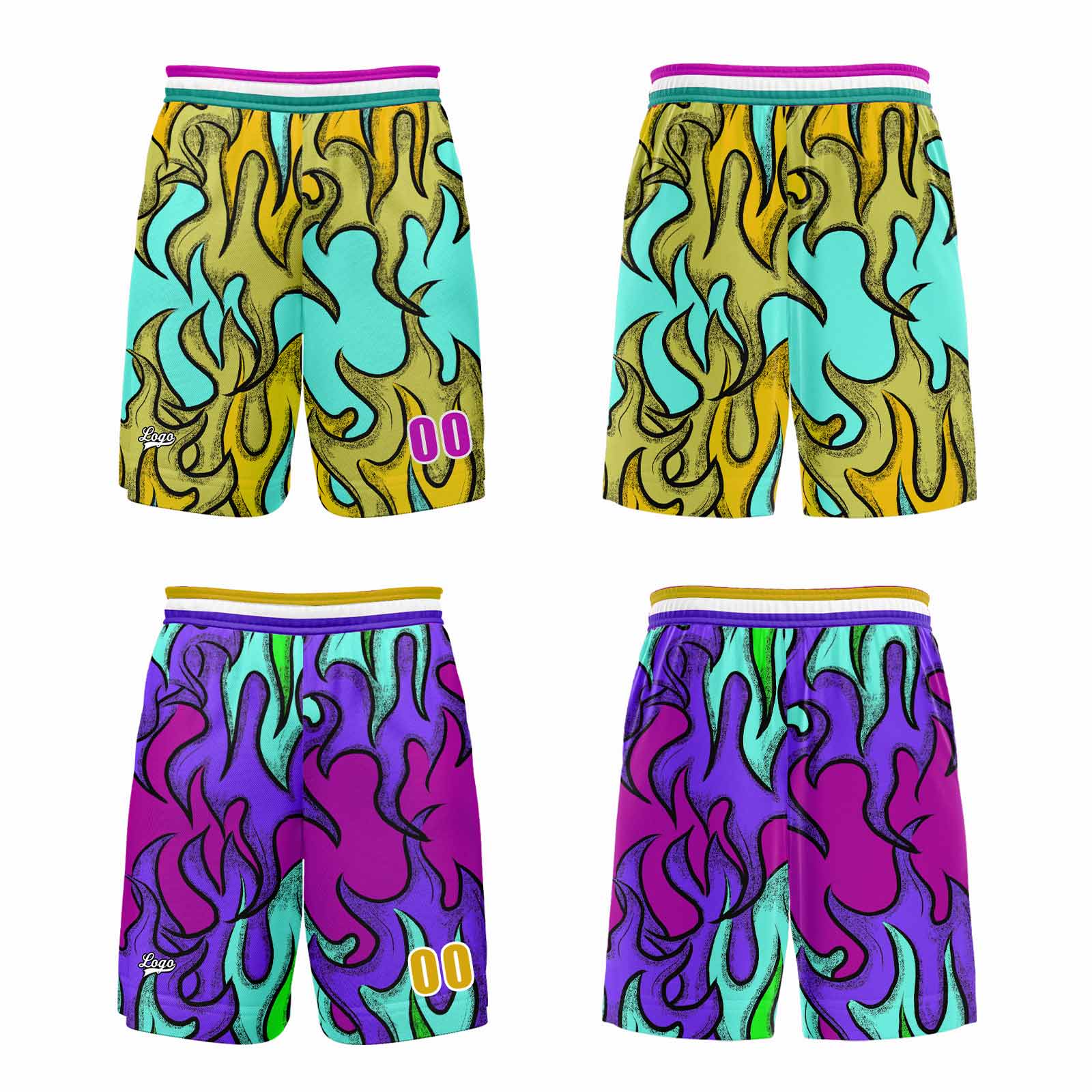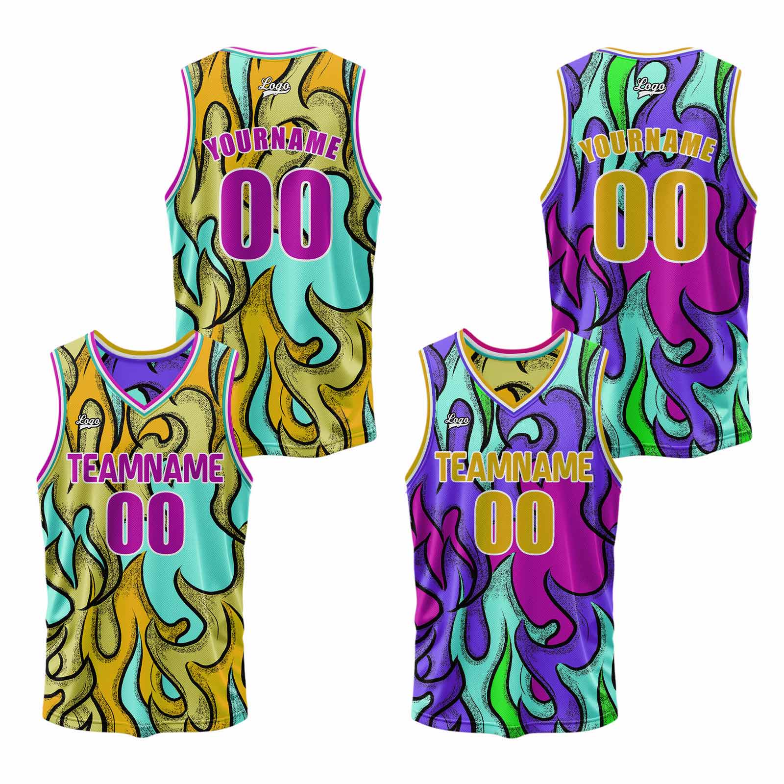 Benutzerdefinierte Lila Gelb Reversible Basketball Jersey Personalisierte Print Name Nummer Logo