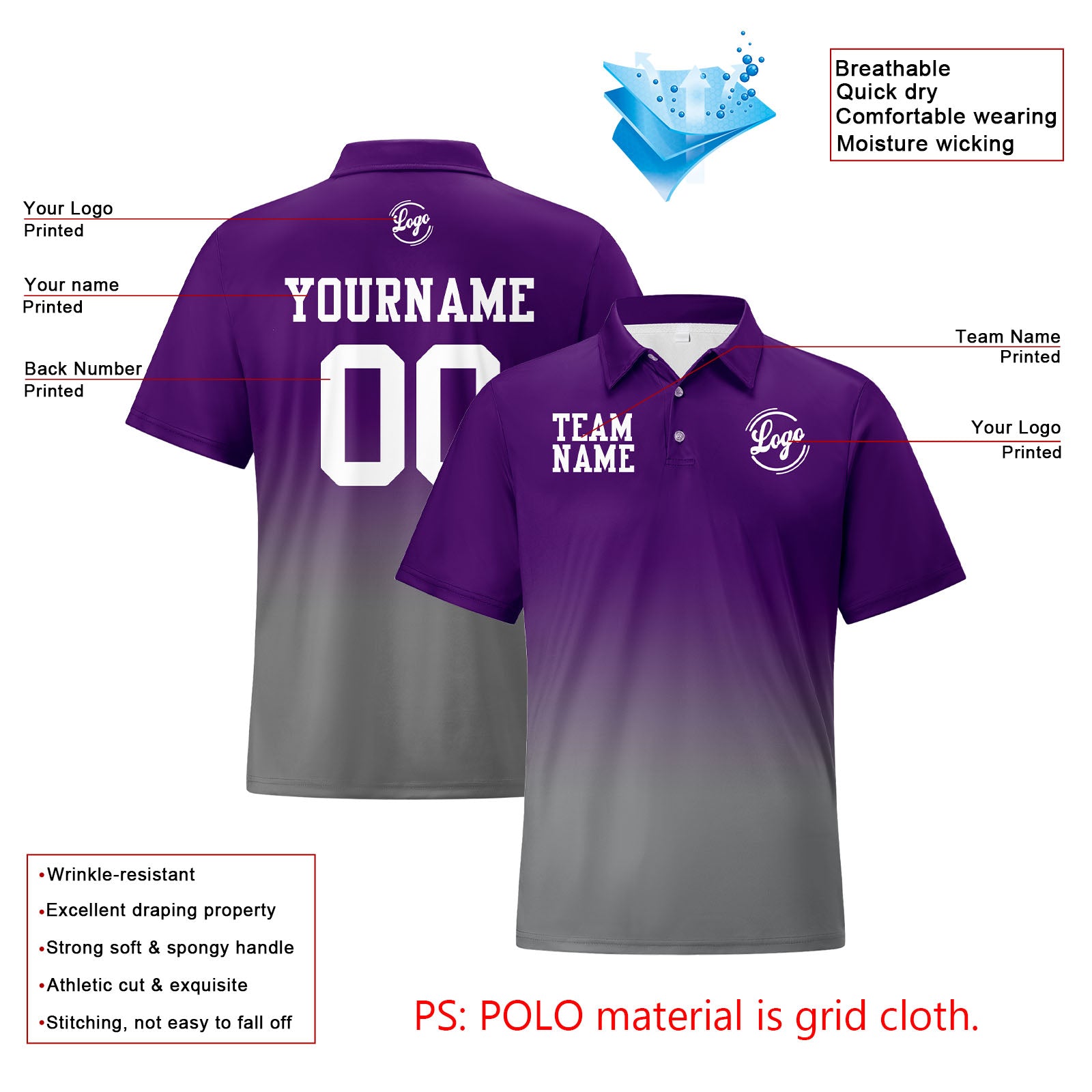 Benutzerdefinierte Lila Grau Fußball Gradient Polo-Shirts Fügen Sie Ihr Einzigartiges hinzu Logo/Name/Nummer