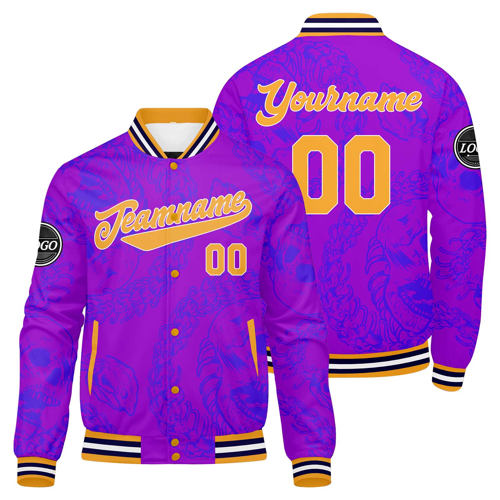 Benutzerdefinierte Lila Orange Varsity-Jacke. Letterman-Jacke für Männer, Frauen und Jugendliche