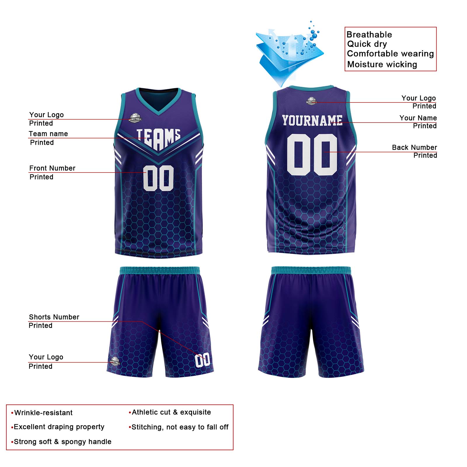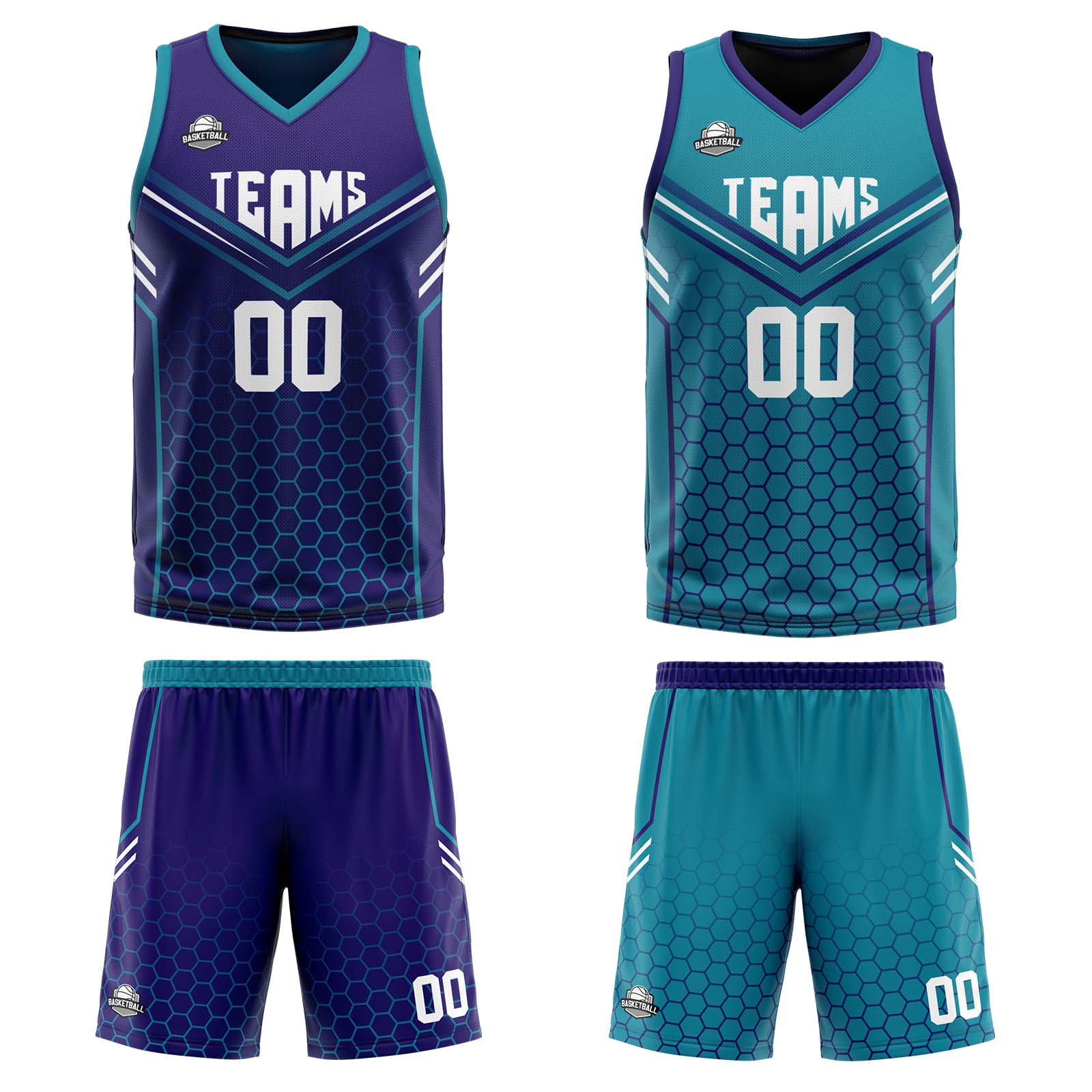 Benutzerdefinierte Lila Teal Reversible Basketball Jersey Personalisierte Print Name Nummer Logo