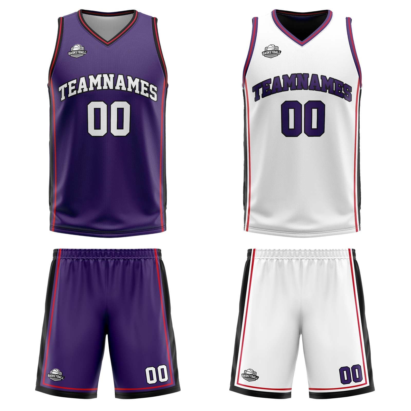 Benutzerdefinierte Lila Weiß Rot Reversible Basketball Jersey Personalisierte Print Name Nummer Logo