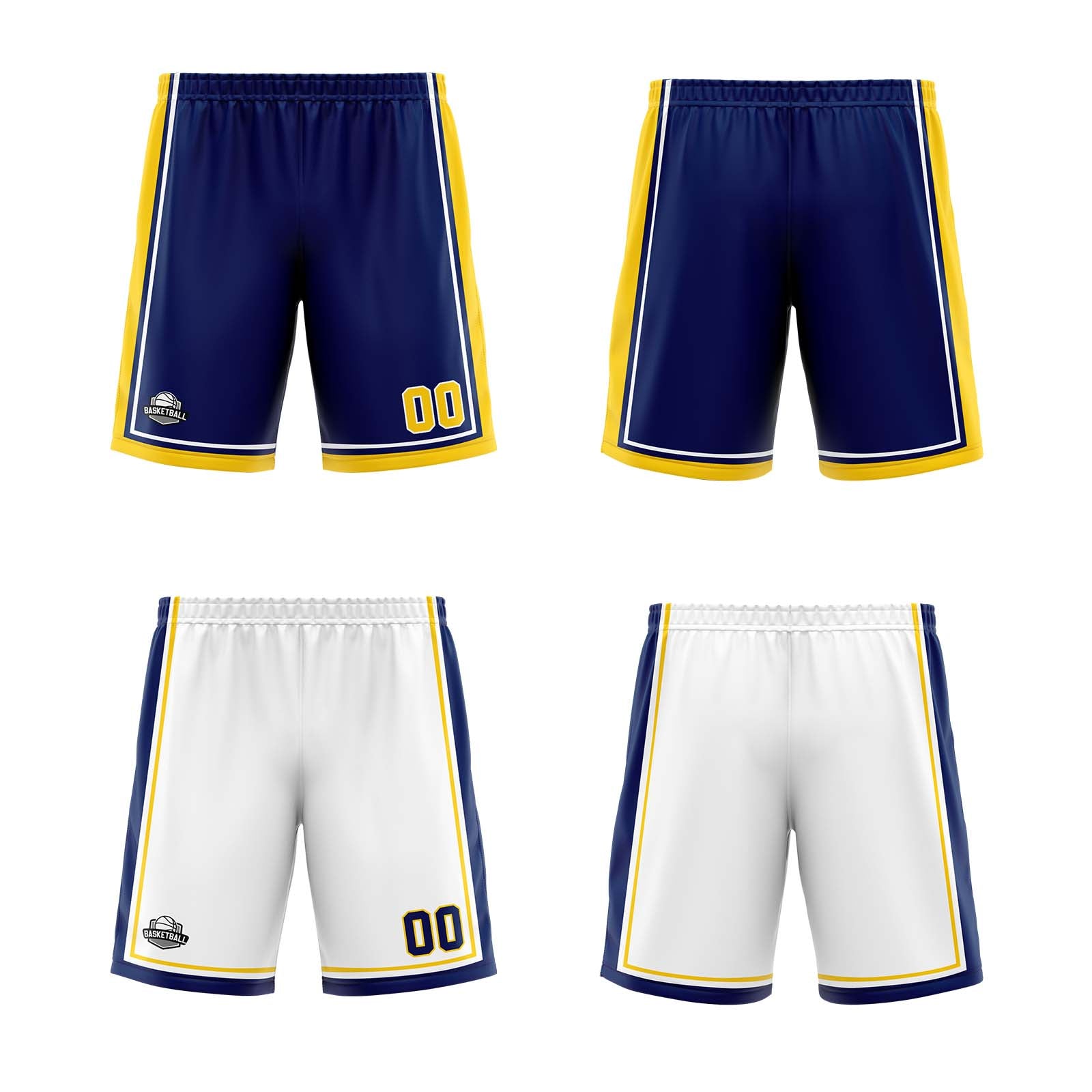 Benutzerdefinierte Marine Gelb Weiß Reversible Basketball Jersey Personalisierte Print Name Nummer Logo