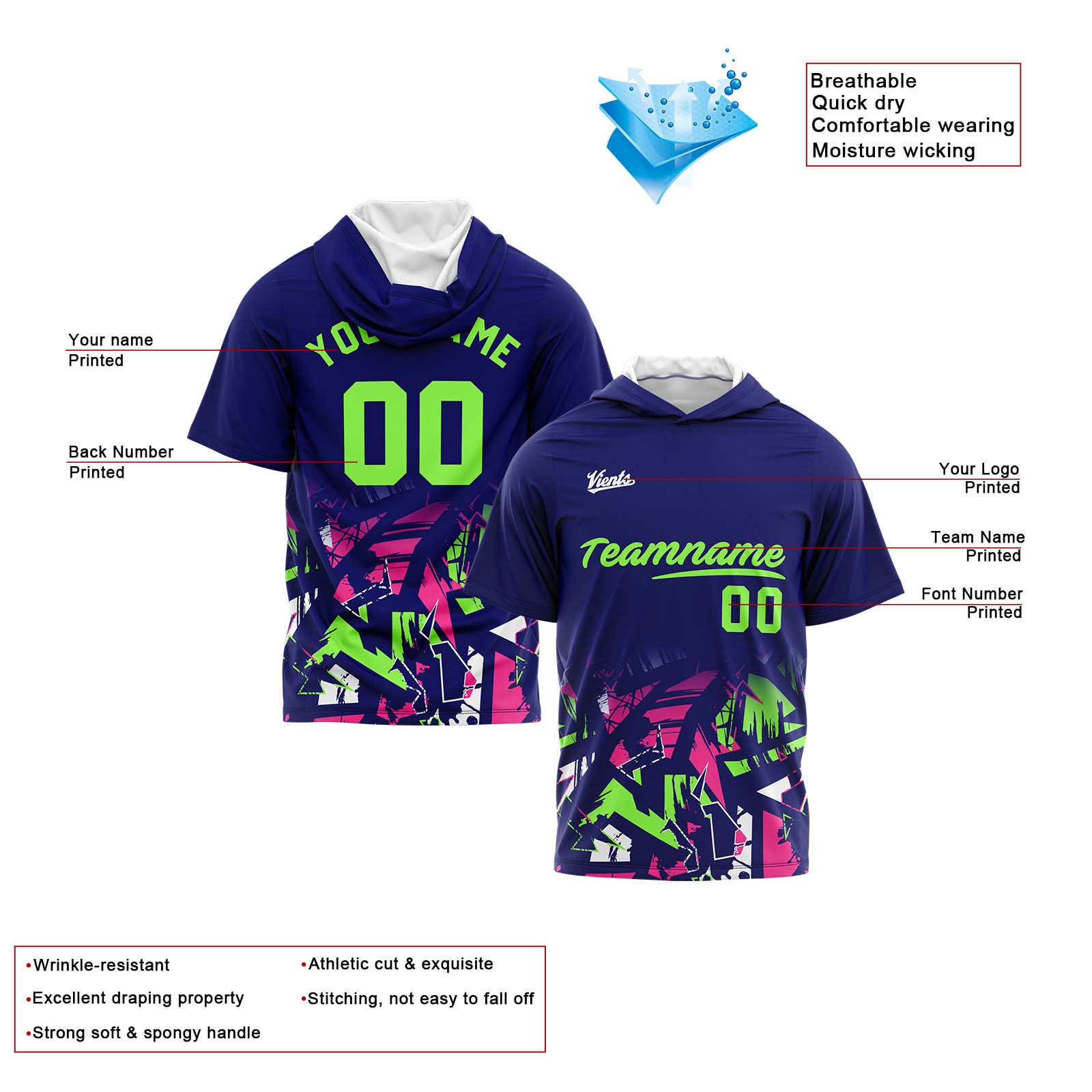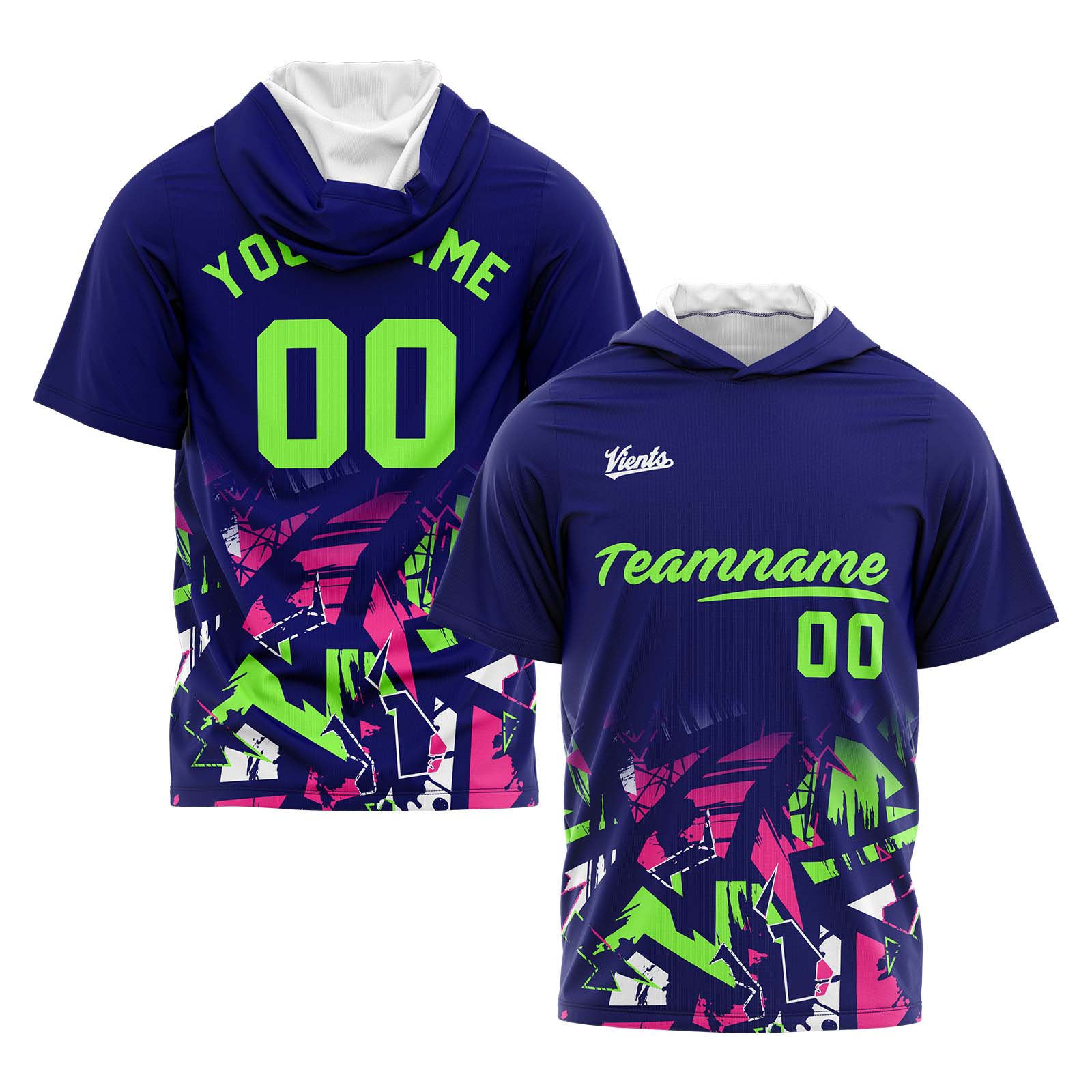 Benutzerdefinierte Marine Grün Kurzarm-Kapuzenpullover für Männer Frauen Hemden mit Kapuzen gedruckt Name Logo