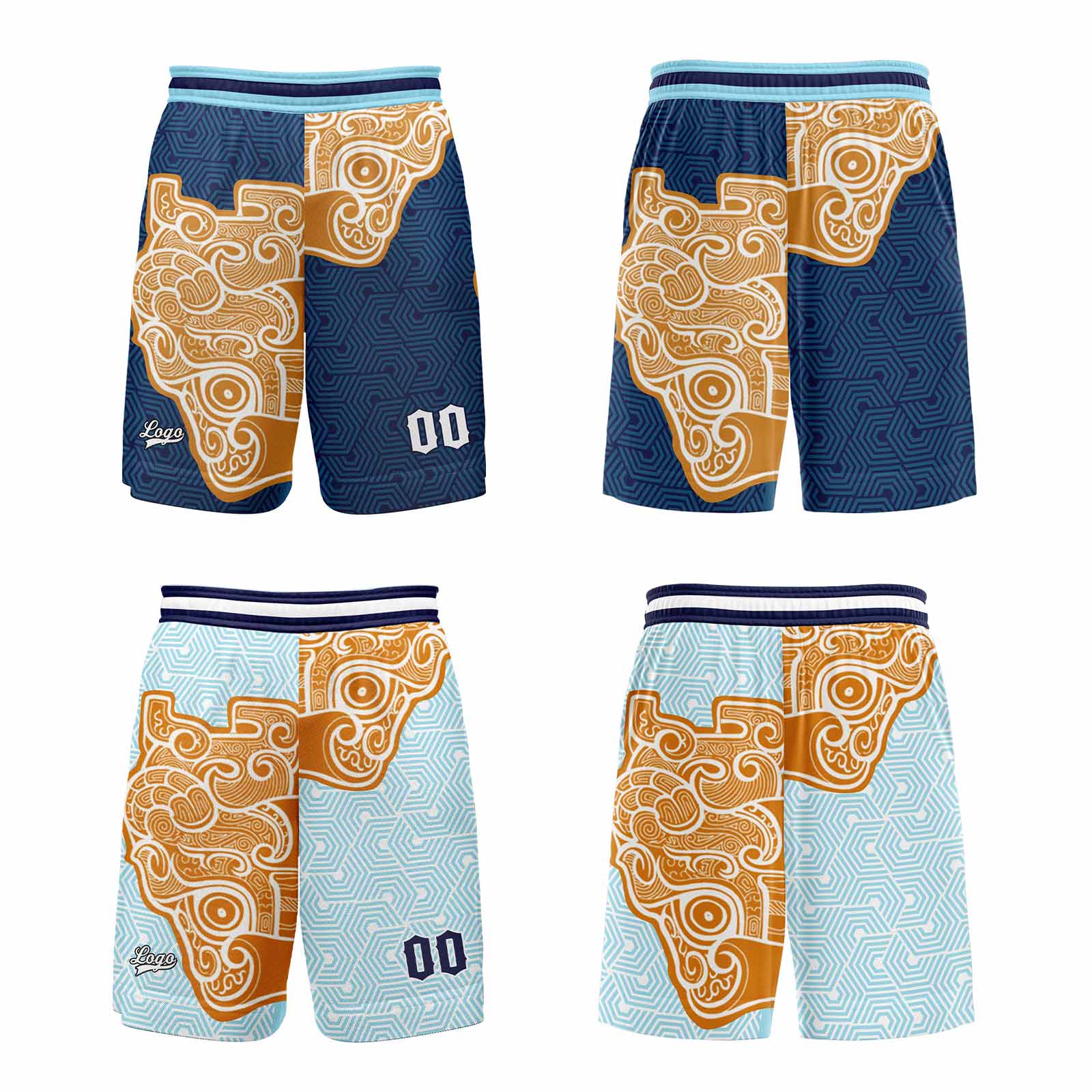 Benutzerdefinierte Marine Hellblau Reversible Basketball Jersey Personalisierte Print Name Nummer Logo