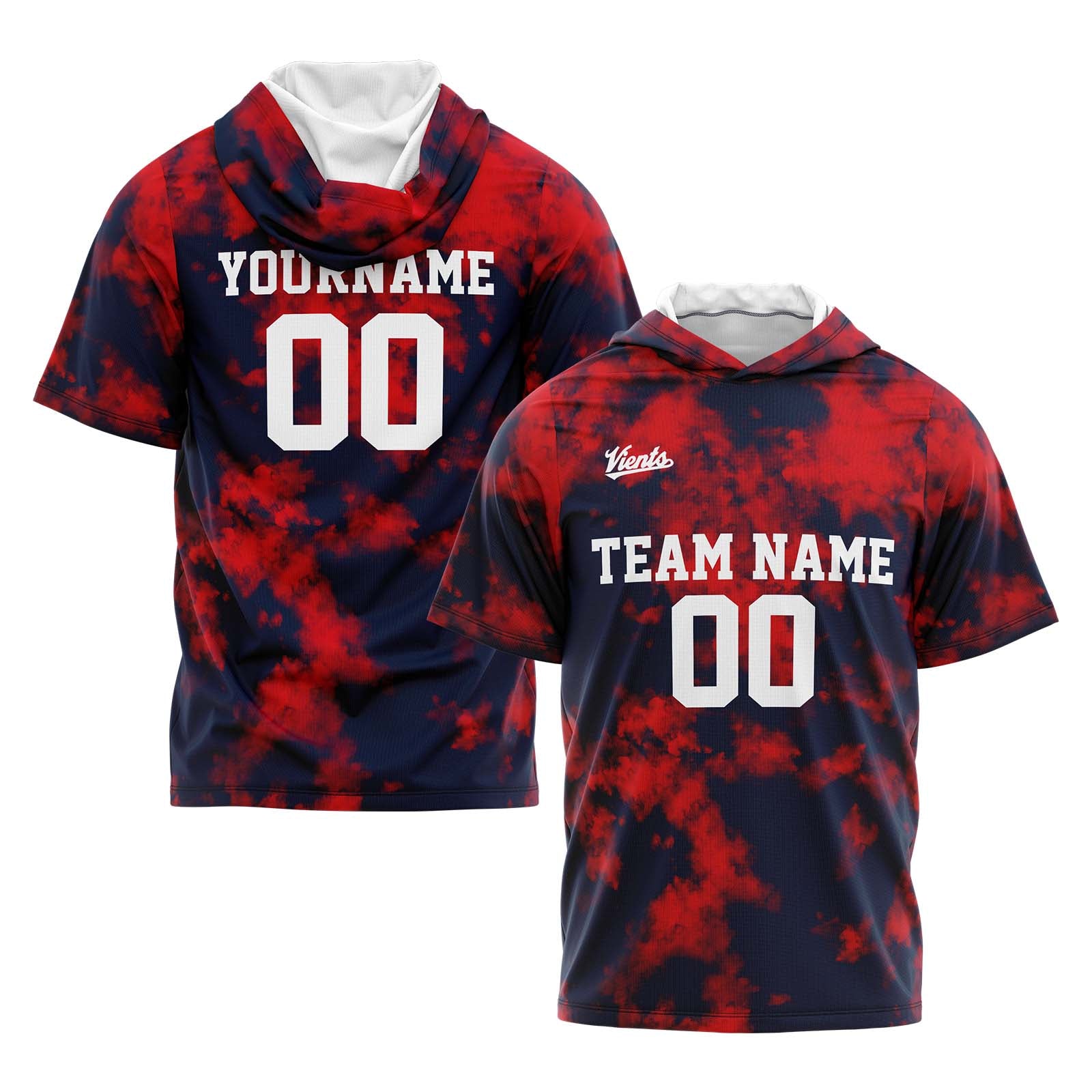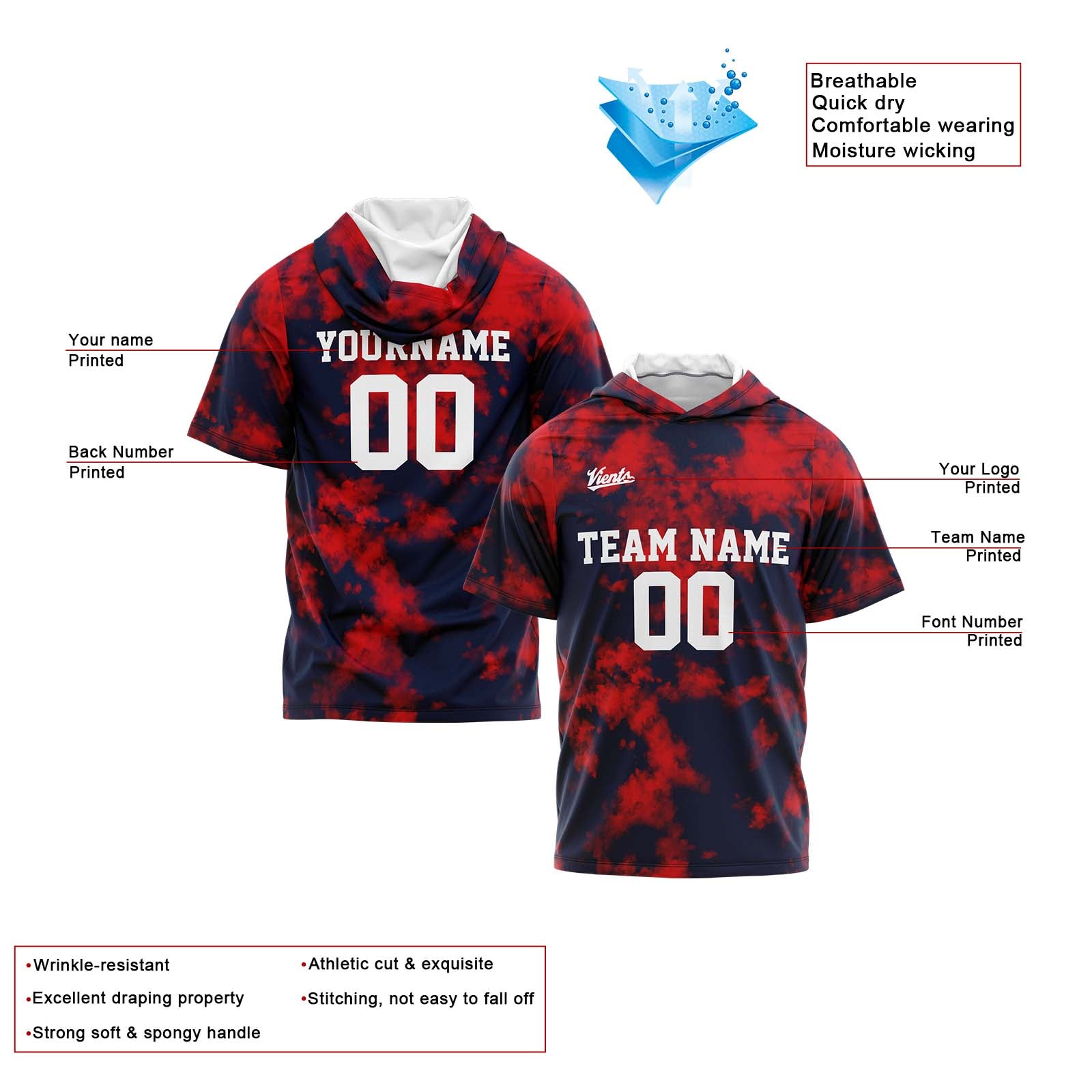 Benutzerdefinierte Marine Rot Kurzarm-Kapuzenpullover für Männer Frauen Hemden mit Kapuzen gedruckt Name Logo