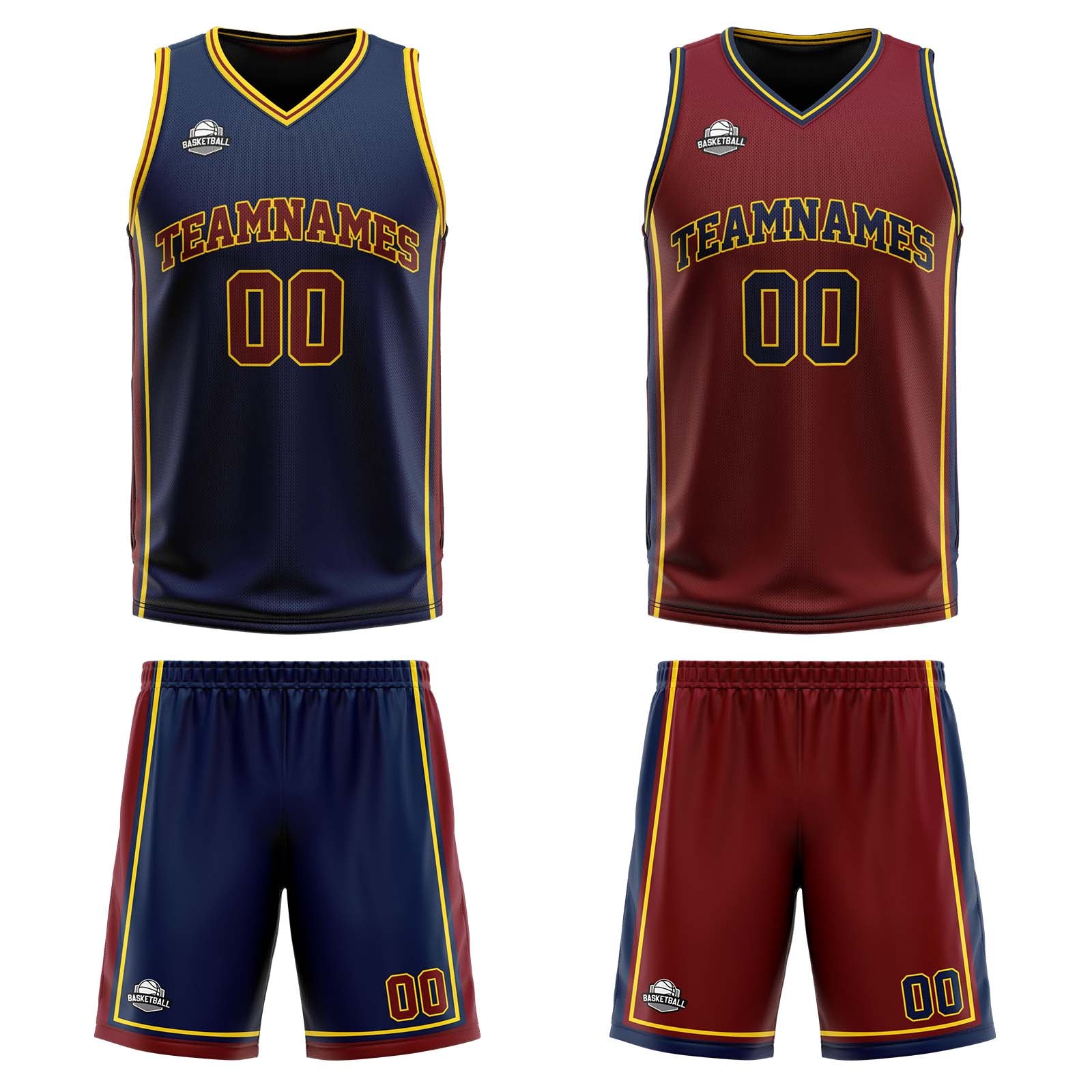 Benutzerdefinierte Marine Wein Gelb Reversible Basketball Jersey Personalisierte Print Name Nummer Logo