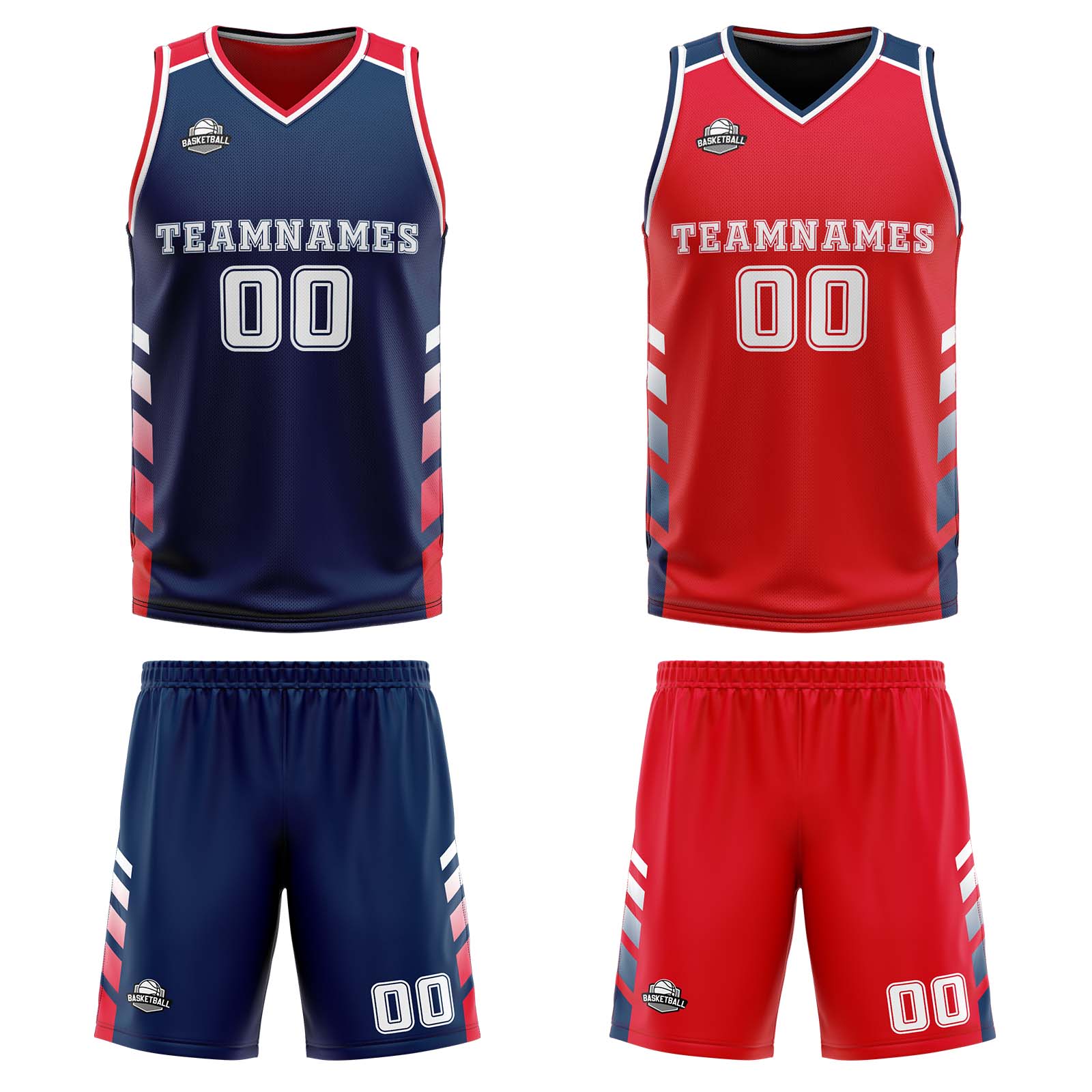 Benutzerdefinierte Marineblau  Rot Weiß Reversible Basketball Jersey Personalisierte Print Name Nummer Logo