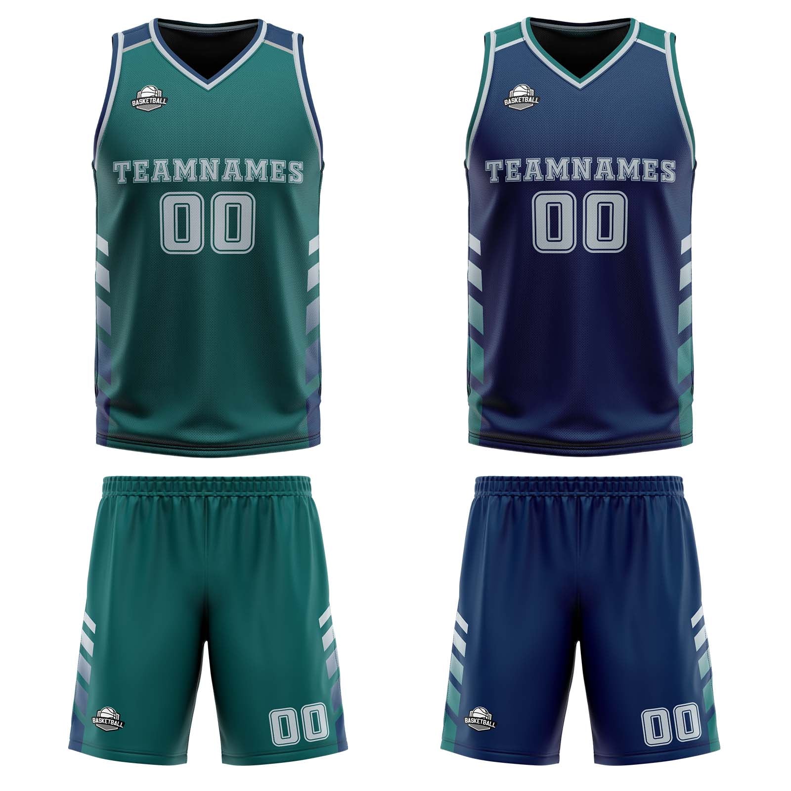 Benutzerdefinierte Mitternachtsgrün Marinegrau Reversible Basketball Jersey Personalisierte Print Name Nummer Logo