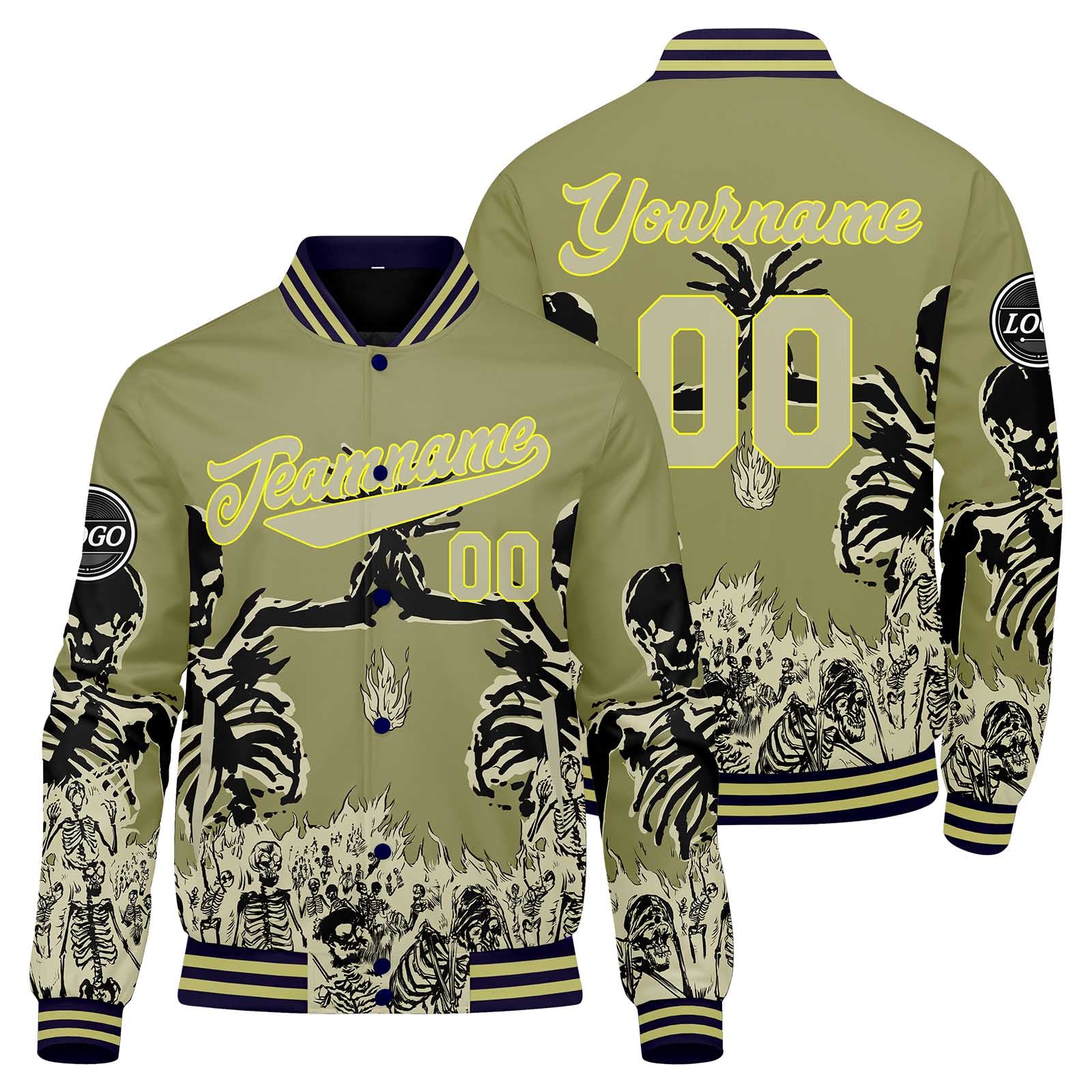 Benutzerdefinierte Olivengrün Varsity-Jacke. Letterman-Jacke für Männer, Frauen und Jugendliche