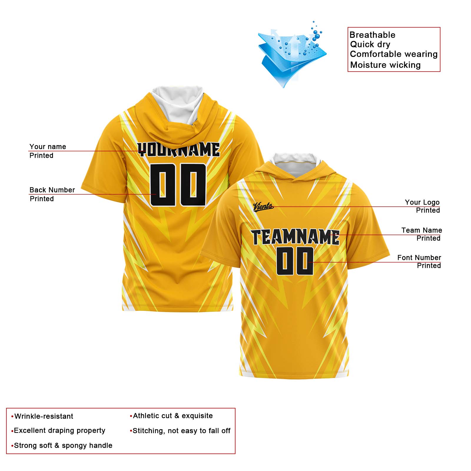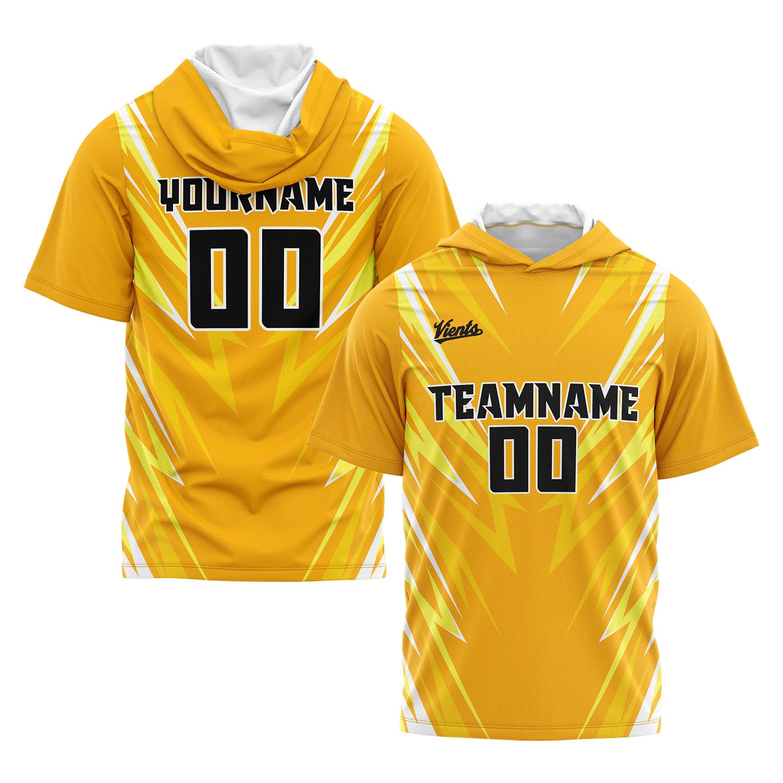 Benutzerdefinierte Orange Neongrün Kurzarm-Kapuzenpullover für Männer Frauen Hemden mit Kapuzen gedruckt Name Logo