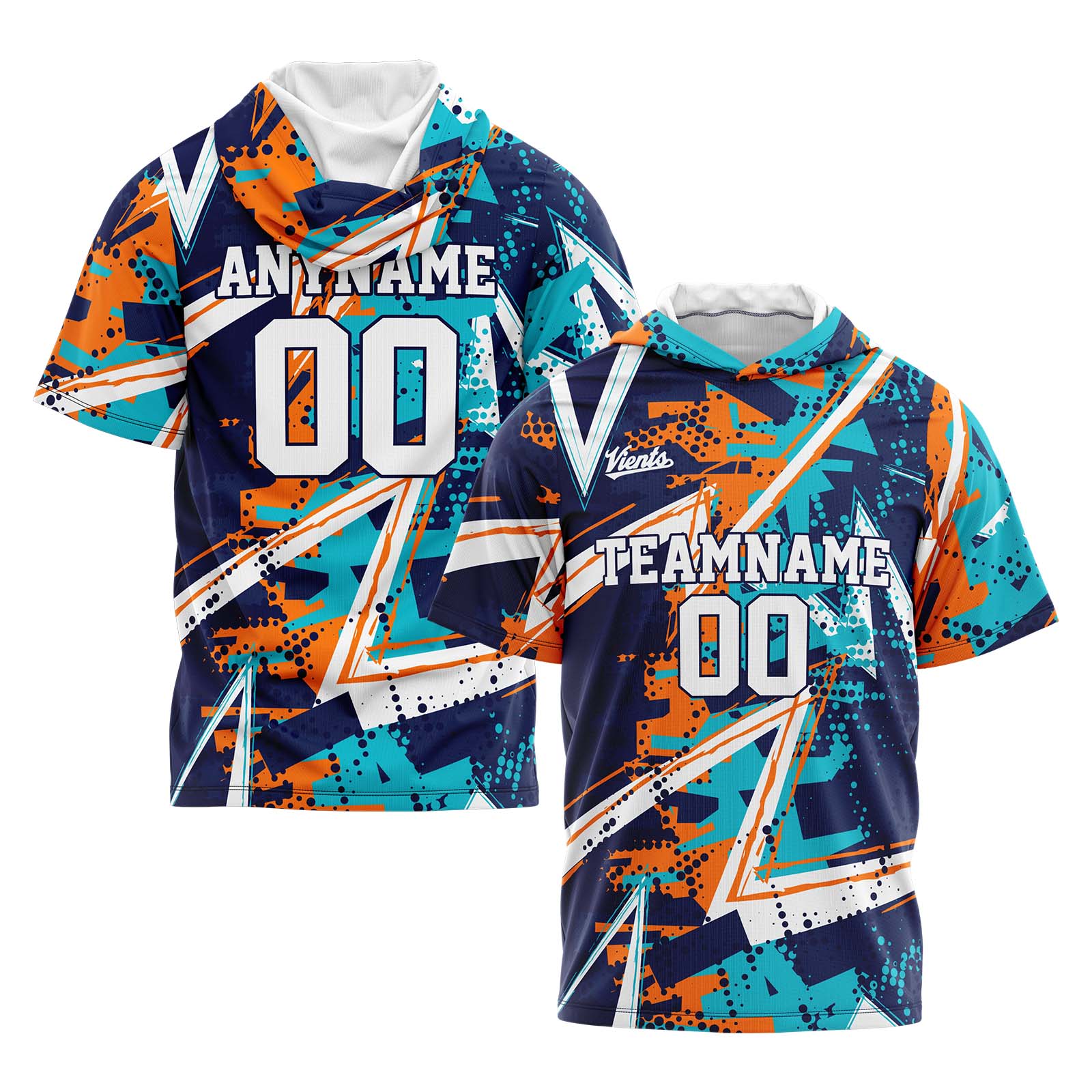 Benutzerdefinierte Marine Orange Teal Neongrün Kurzarm-Kapuzenpullover für Männer Frauen Hemden mit Kapuzen gedruckt Name Logo