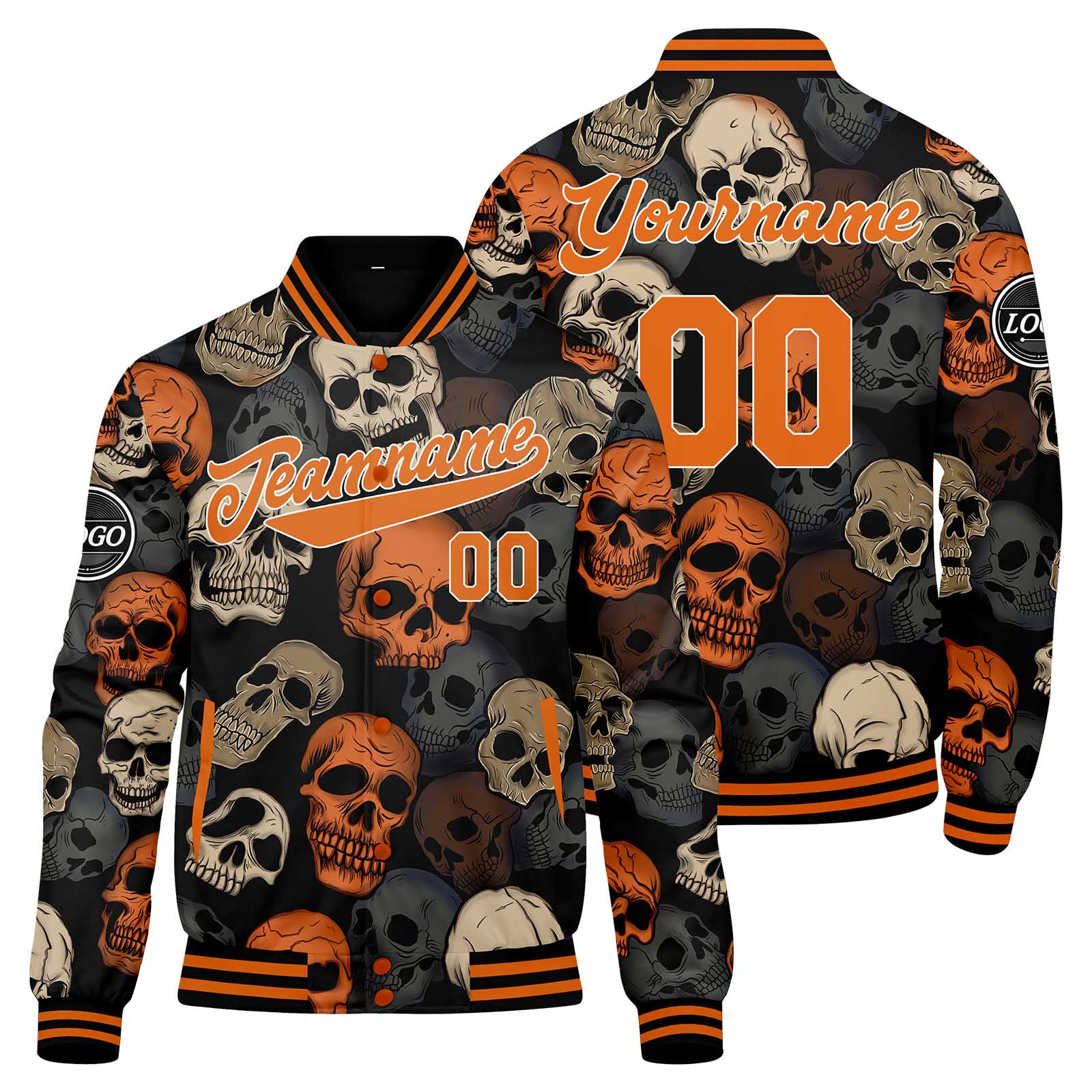 Benutzerdefinierte Orange Varsity-Jacke. Letterman-Jacke für Männer, Frauen und Jugendliche