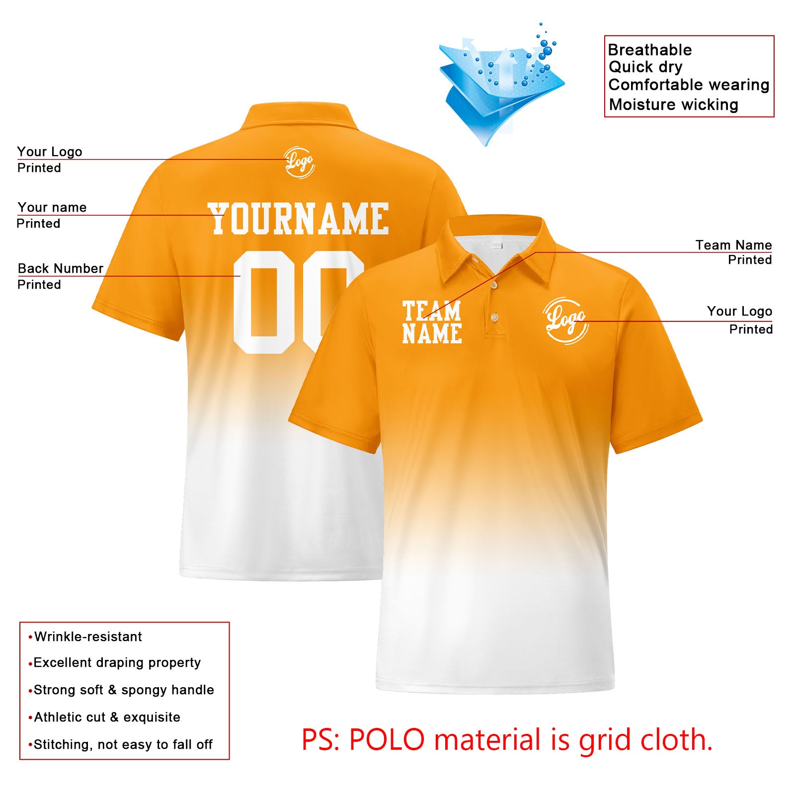 Benutzerdefinierte Orange Weiß Fußball Gradient Polo-Shirts Fügen Sie Ihr Einzigartiges hinzu Logo/Name/Nummer