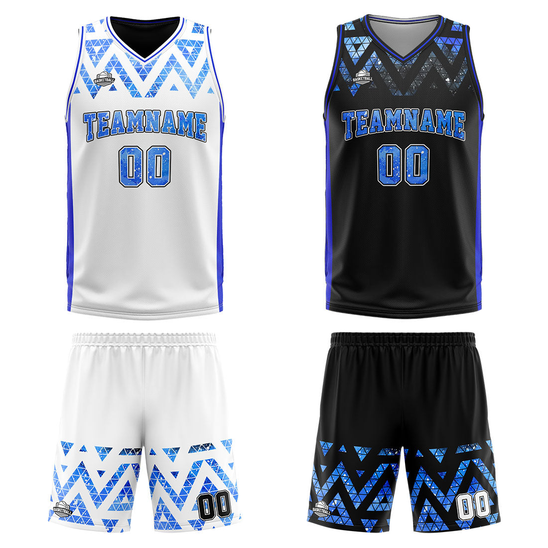 Benutzerdefinierte Reversible Basketball Jersey Personalisierte Print Name Nummer Logo Blau-Schwarz-Weiß