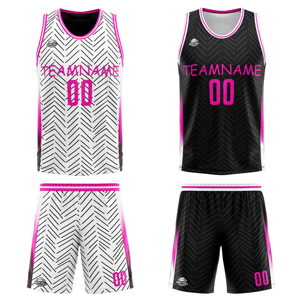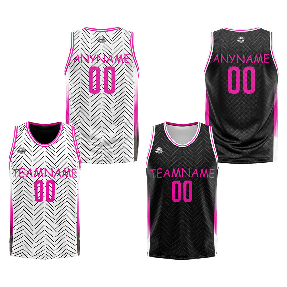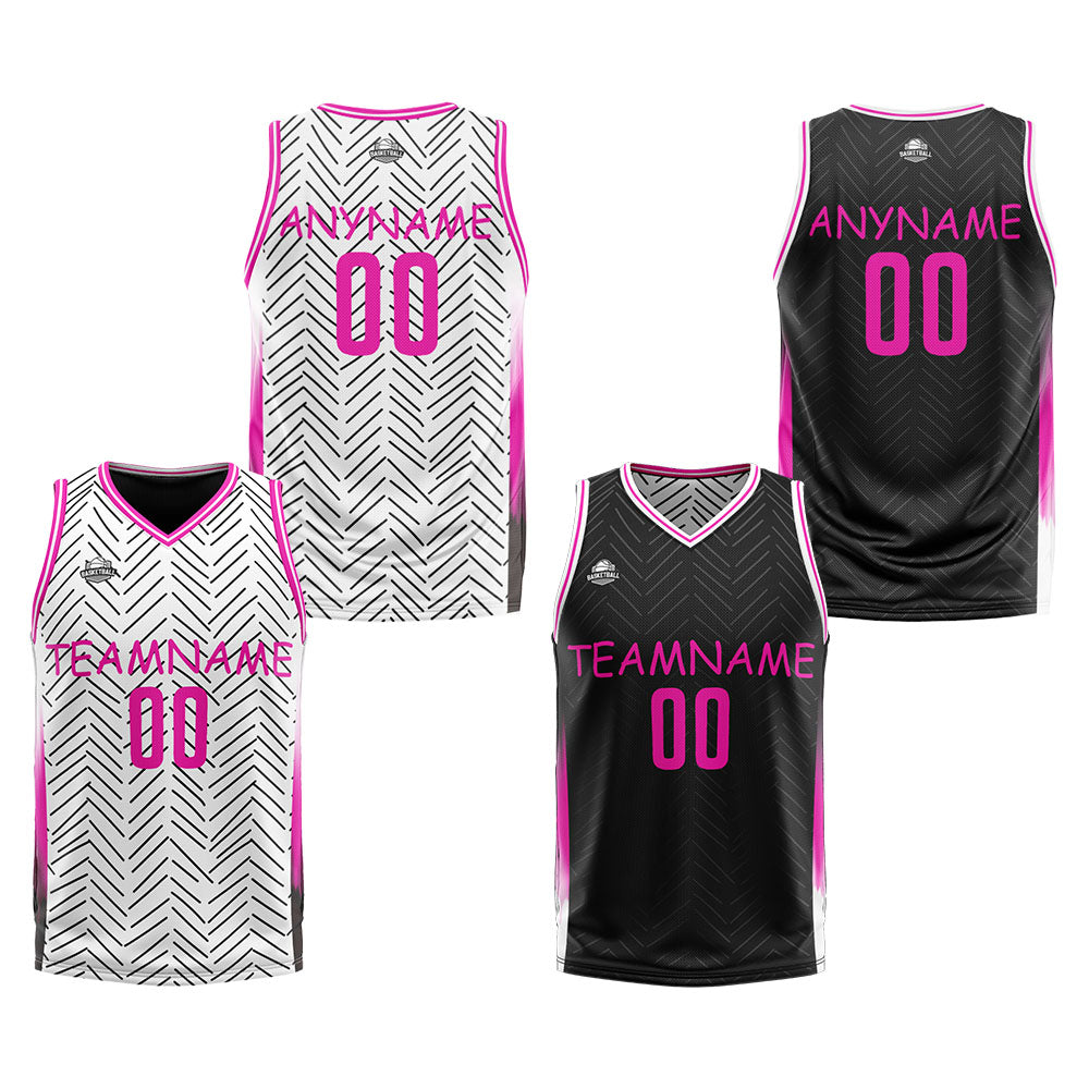 Benutzerdefinierte Reversible Basketball Jersey Personalisierte Print Name Nummer Logo Chevron-Weiß&Schwarz