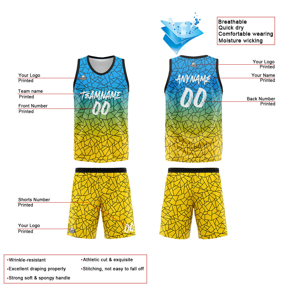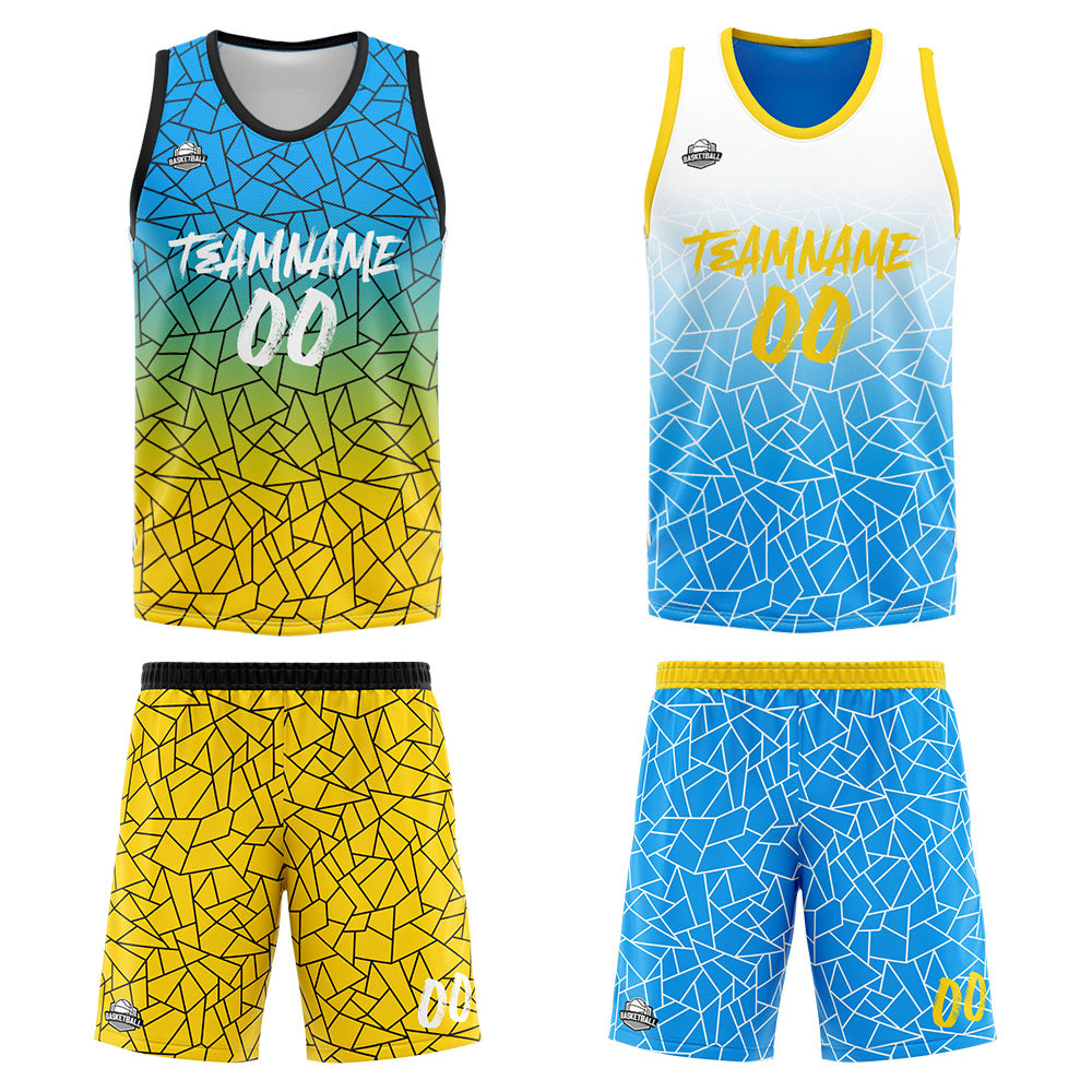 Benutzerdefinierte Reversible Basketball Jersey Personalisierte Print Name Nummer Logo Flaw- Hellblau&Gelb