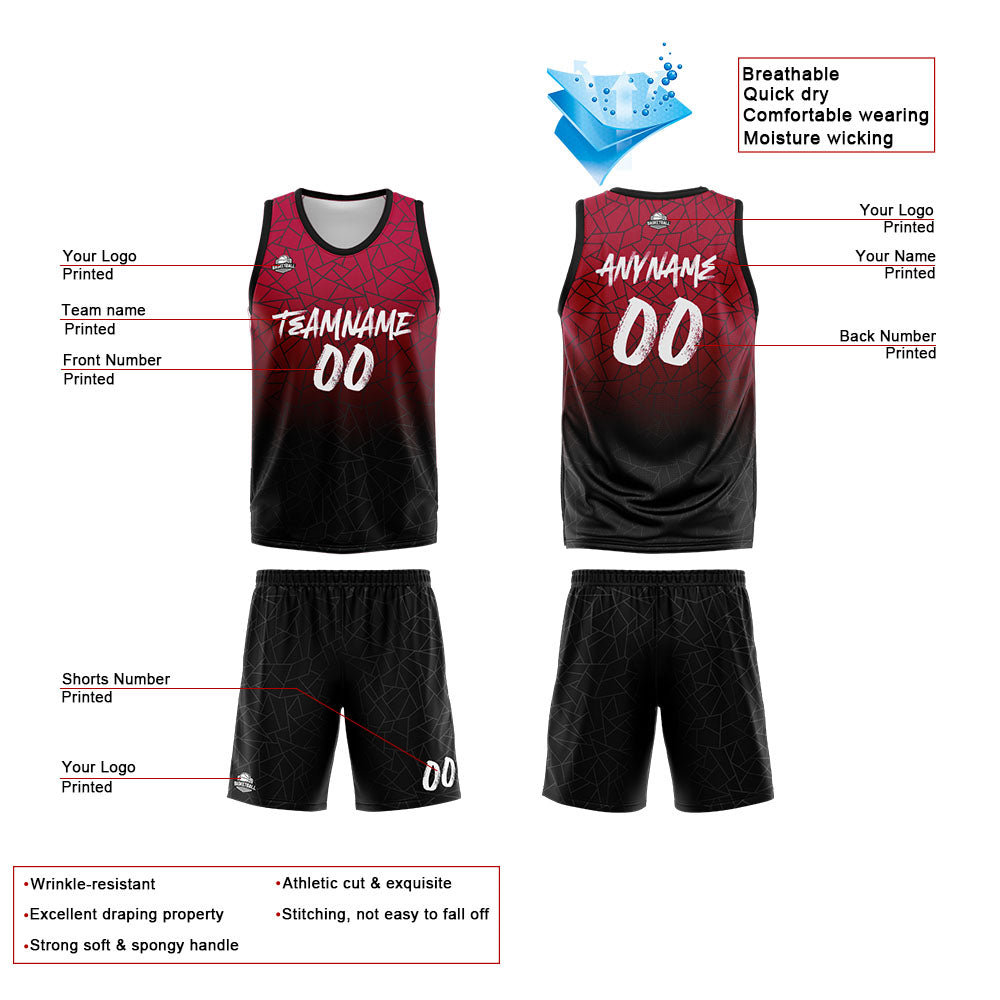 Benutzerdefinierte Reversible Basketball Jersey Personalisierte Print Name Nummer Logo Flaw-Rot&Schwarz