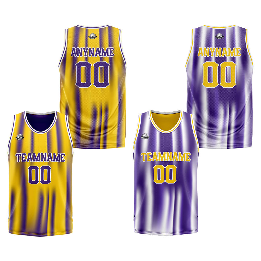 Benutzerdefinierte Reversible Basketball Jersey Personalisierte Print Name Nummer Logo Gelb&Lila