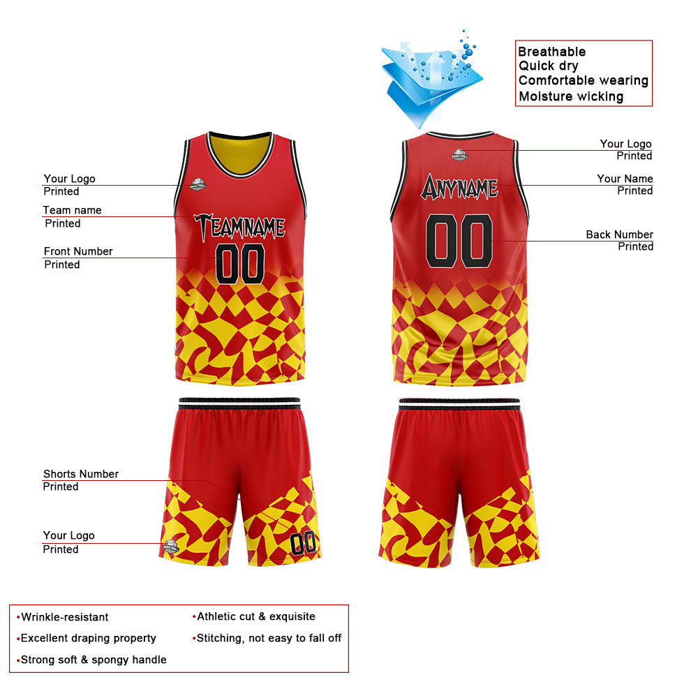 Benutzerdefinierte Reversible Basketball Jersey Personalisierte Print Name Nummer Logo Gitter-Rot&Schwarz