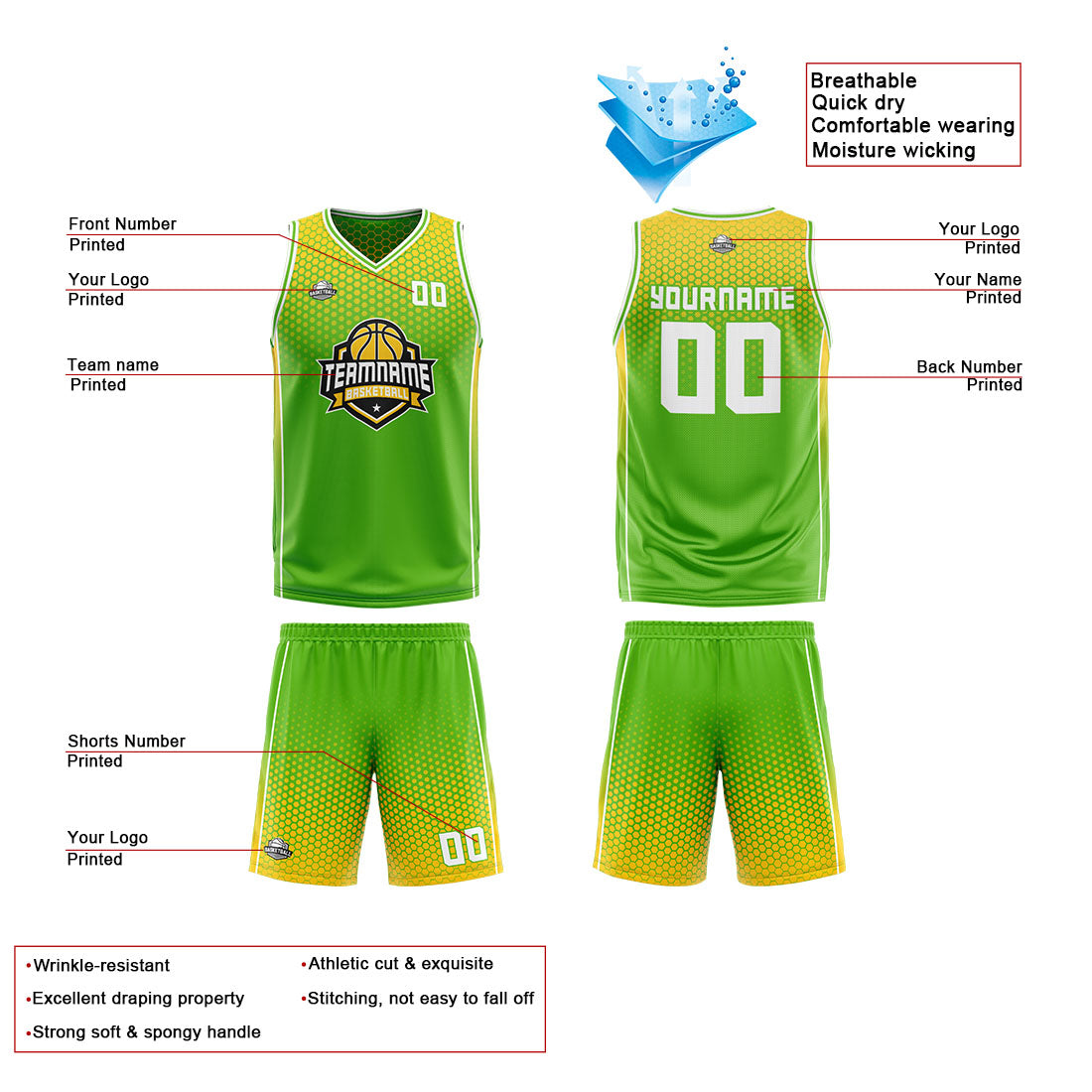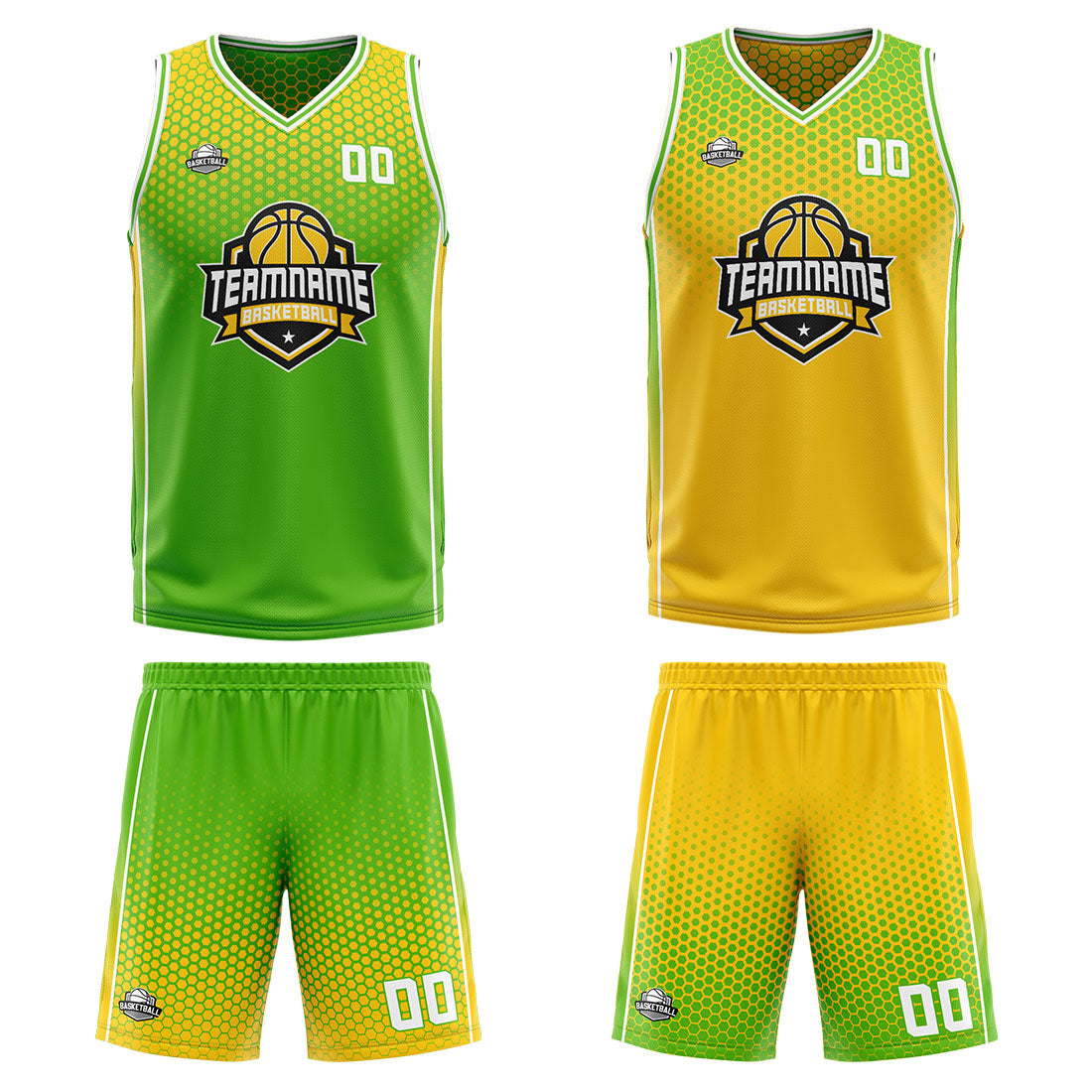 Benutzerdefinierte Reversible Basketball Jersey Personalisierte Print Name Nummer Logo Grün-Gelb