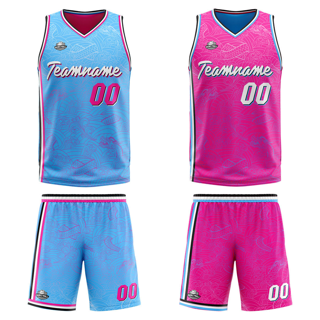 Benutzerdefinierte Reversible Basketball Jersey Personalisierte Print Name Nummer Logo Hellblau-rosa