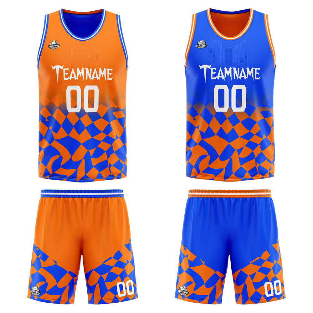 Benutzerdefinierte Reversible Basketball Jersey Personalisierte Print Name Nummer Logo Lattice-Orange&Royal