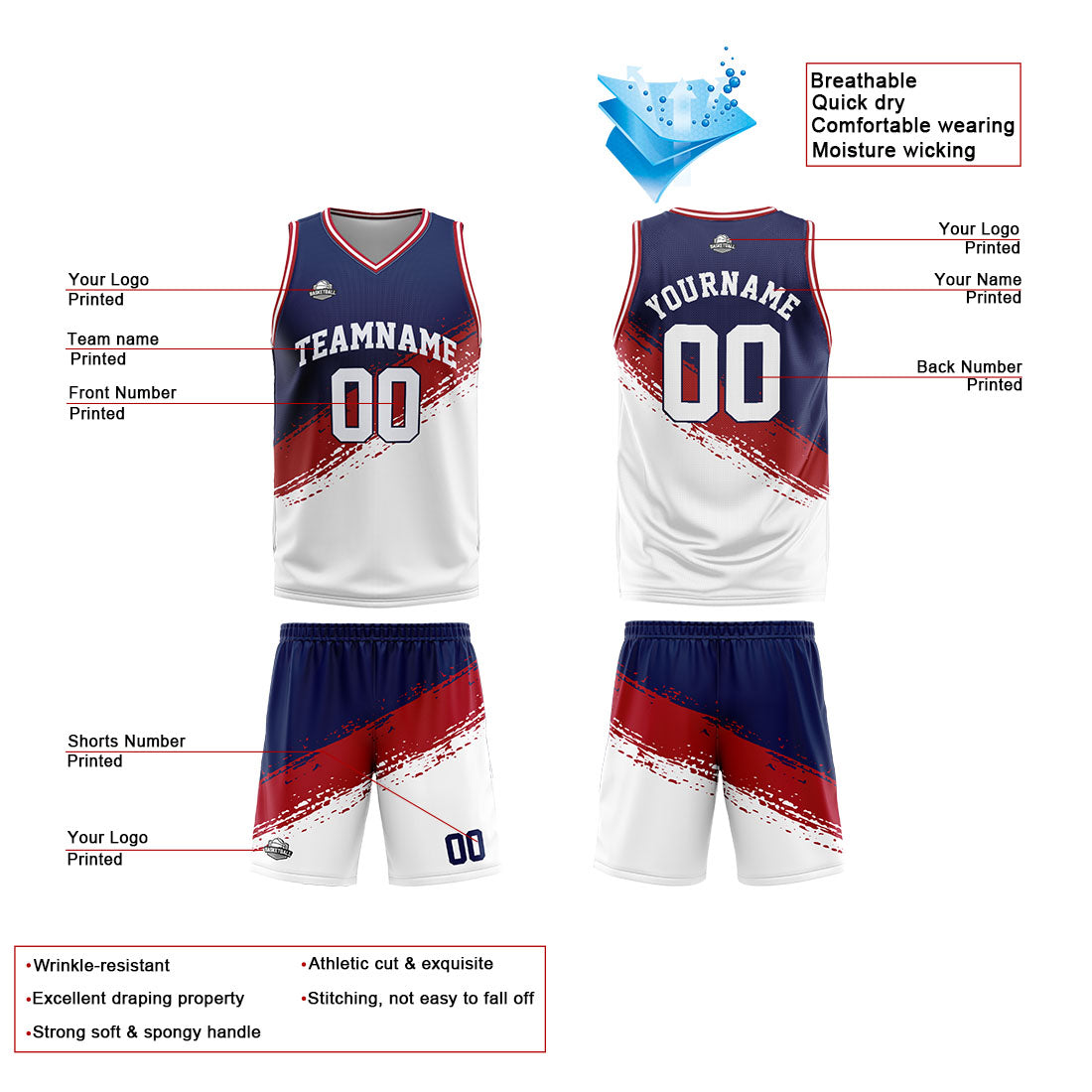 Benutzerdefinierte Reversible Basketball Jersey Personalisierte Print Name Nummer Logo Marine -Rot-Weiß