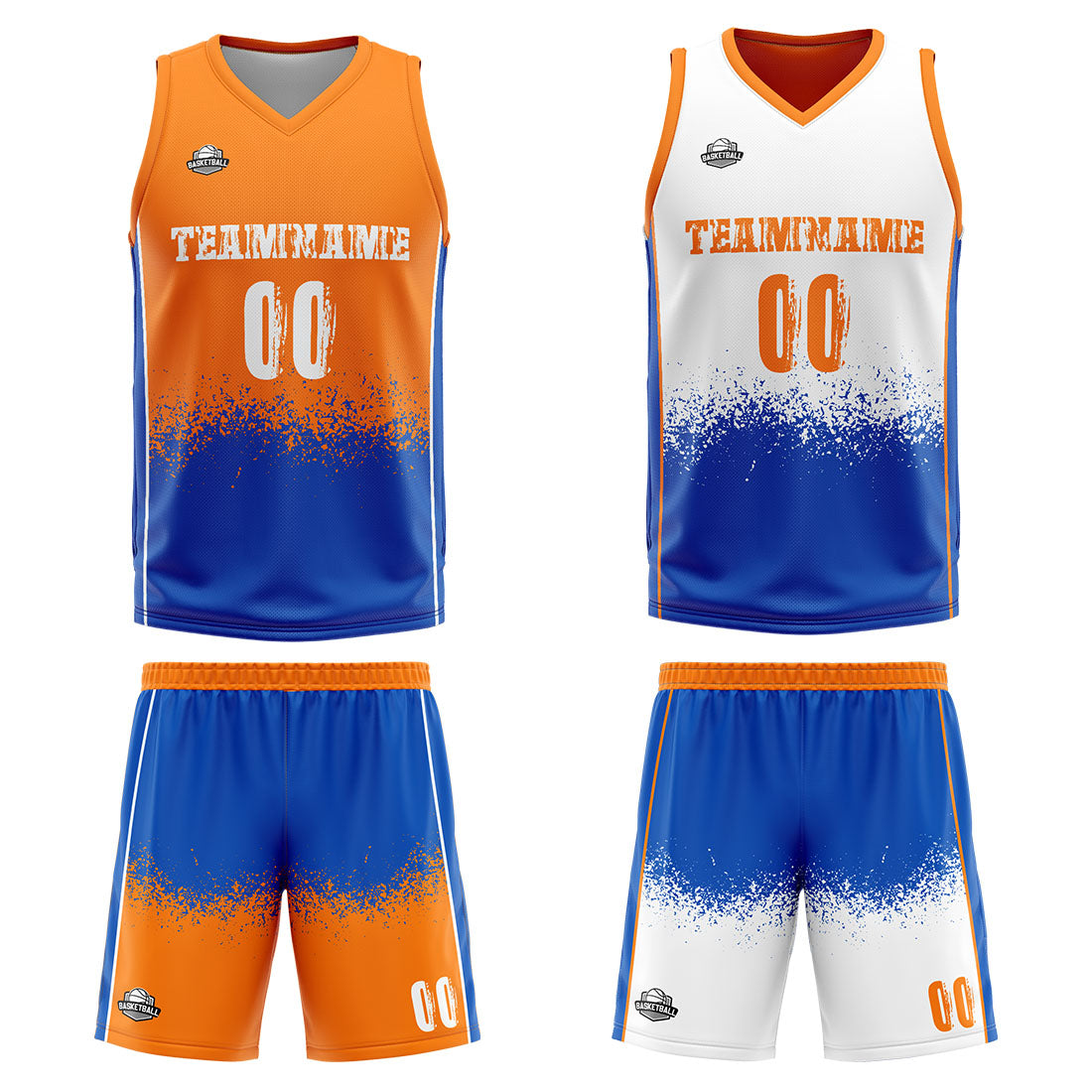Benutzerdefinierte Reversible Basketball Jersey Personalisierte Print Name Nummer Logo Orange-Blau