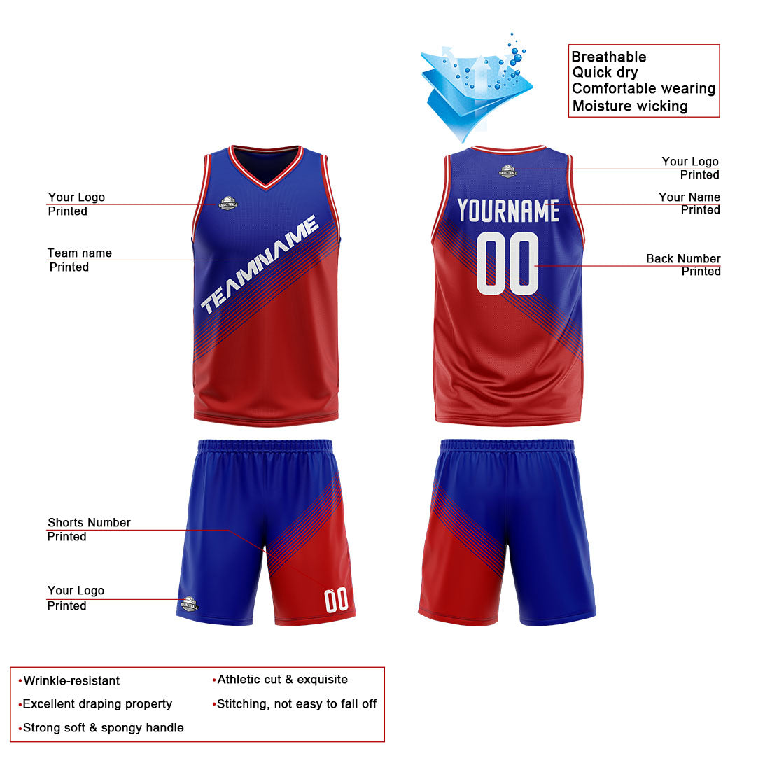Benutzerdefinierte Reversible Basketball Jersey Personalisierte Print Name Nummer Logo Rot- Royal