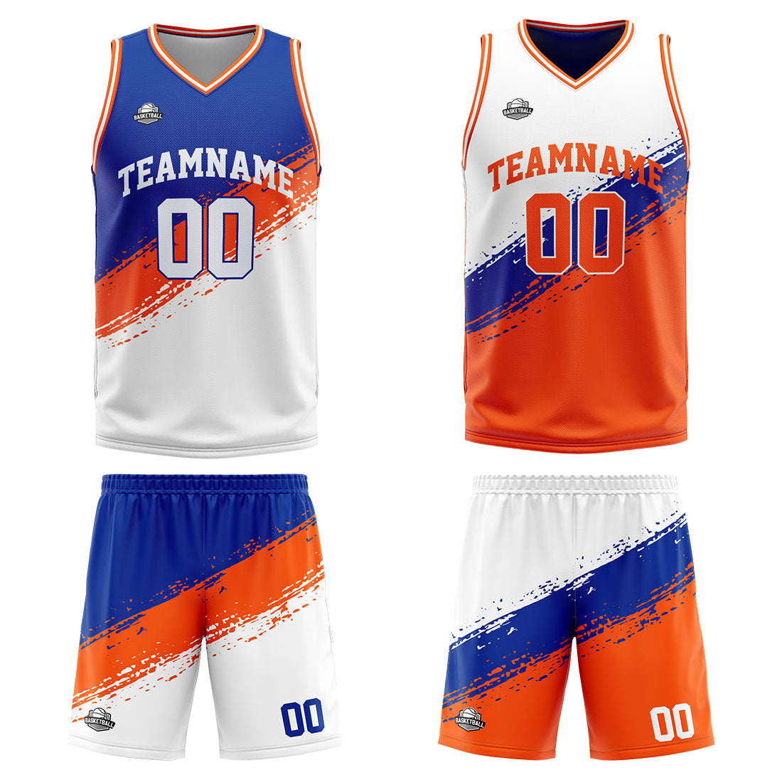 Benutzerdefinierte Reversible Basketball Jersey Personalisierte Print Name Nummer Logo Royal-Orange-Weiß