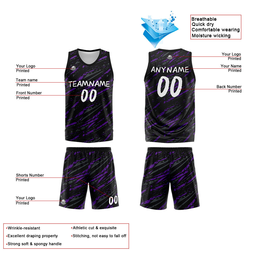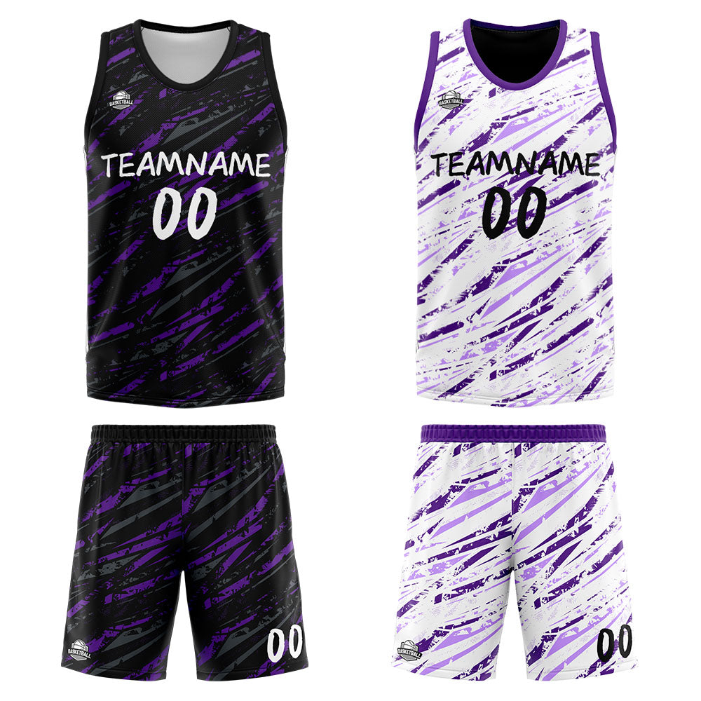 Benutzerdefinierte Reversible Basketball Jersey Personalisierte Print Name Nummer Logo Schaden&Lila