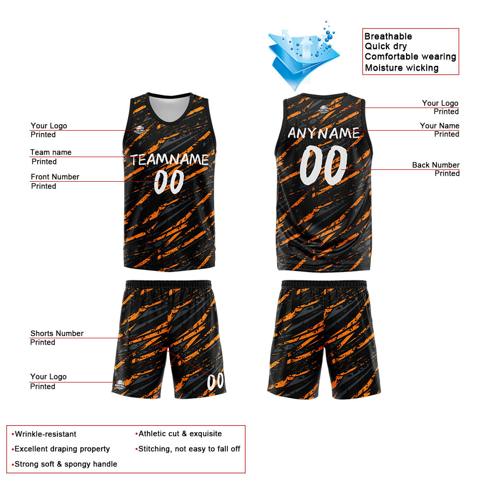 Benutzerdefinierte Reversible Basketball Jersey Personalisierte Print Name Nummer Logo Schaden-Orange