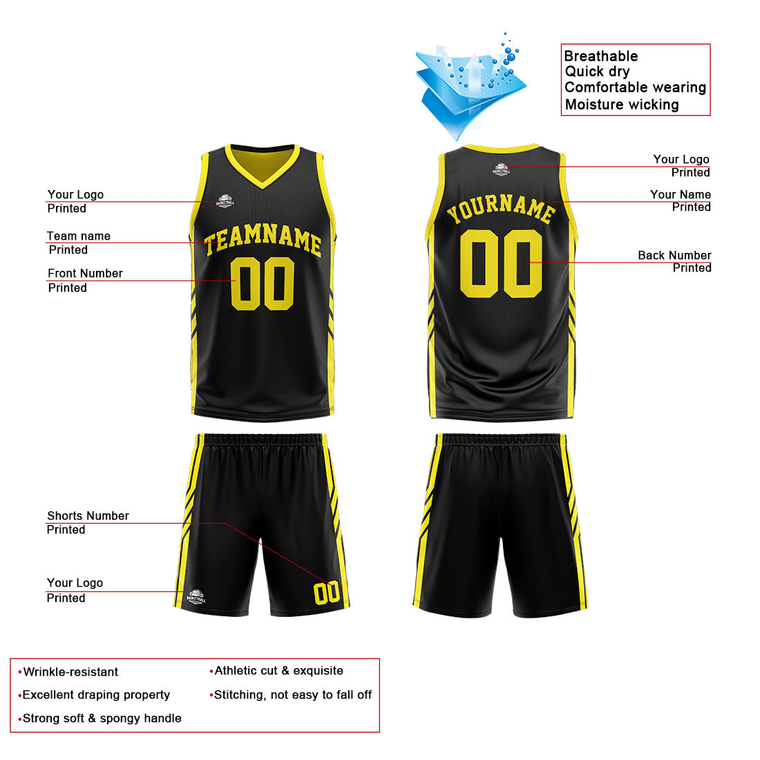 Benutzerdefinierte Reversible Basketball Jersey Personalisierte Print Name Nummer Logo Schwarz-Gelb