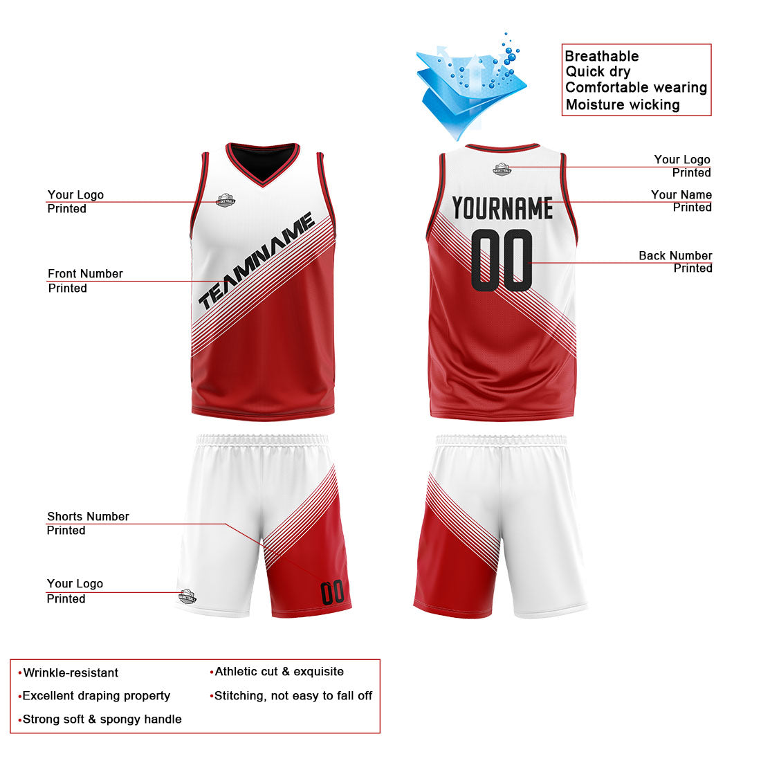 Benutzerdefinierte Reversible Basketball Jersey Personalisierte Print Name Nummer Logo Schwarz&Rot