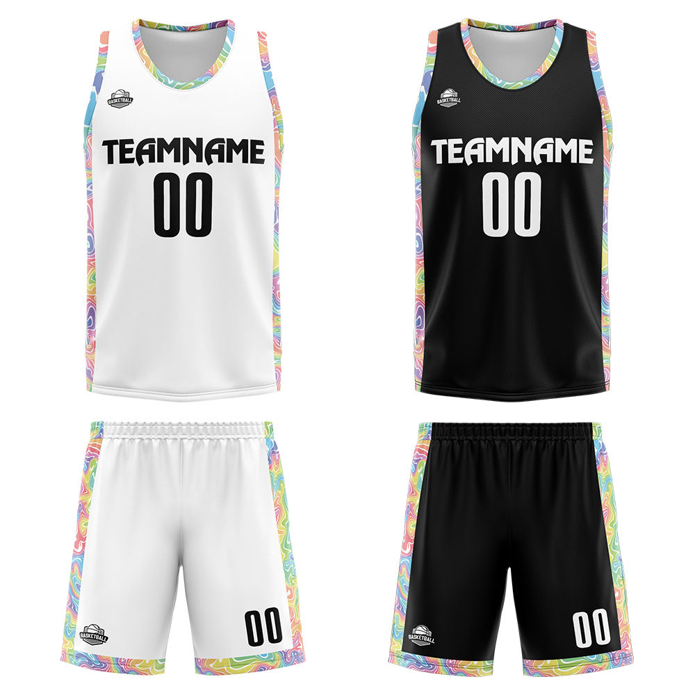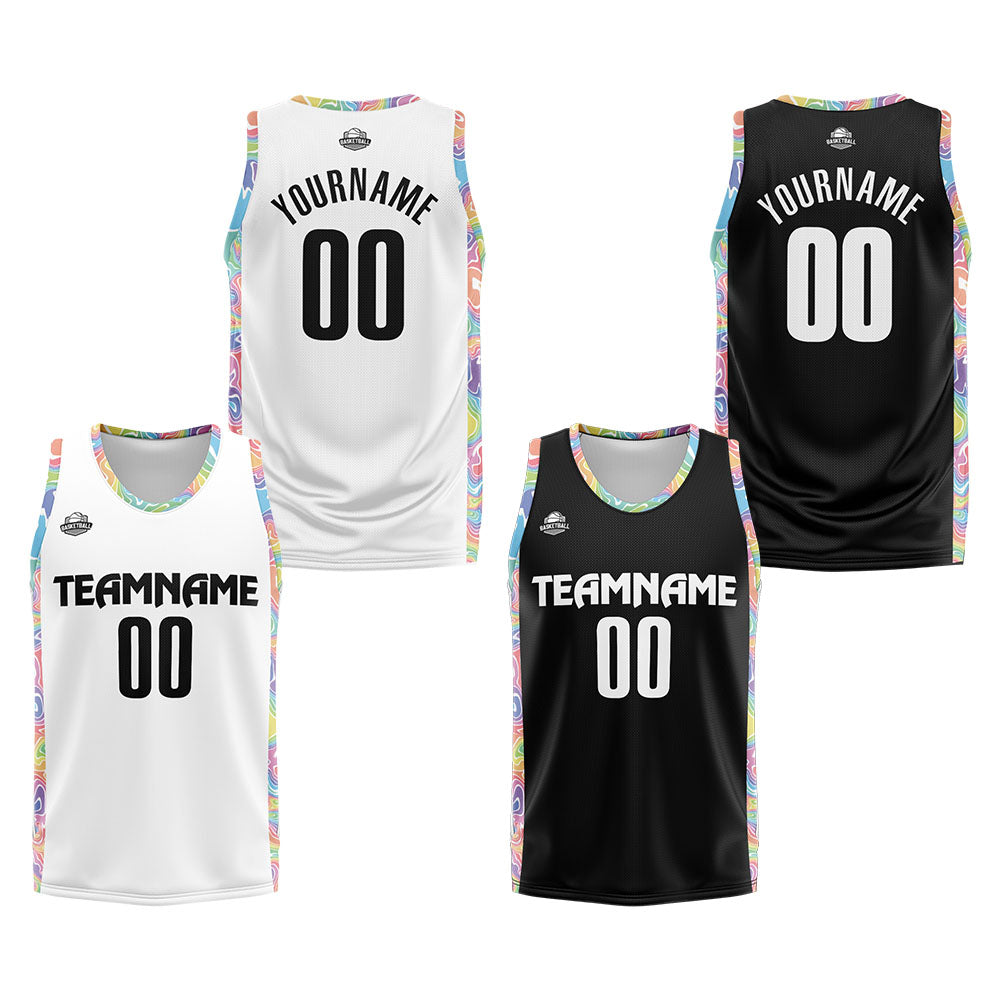 Benutzerdefinierte Reversible Basketball Jersey Personalisierte Print Name Nummer Logo Schwarz&Weiß