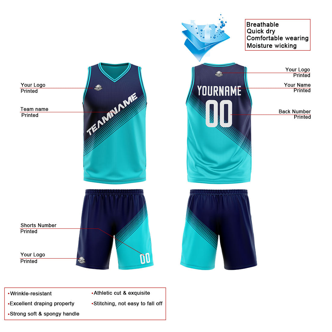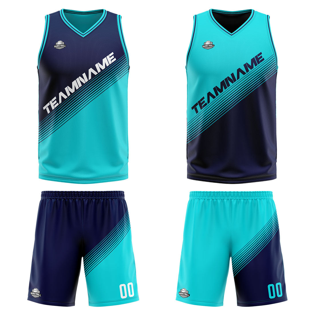 Benutzerdefinierte Reversible Basketball Jersey Personalisierte Print Name Nummer Logo Teal- Marine