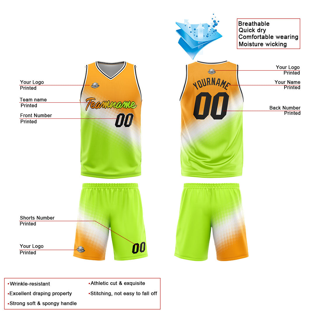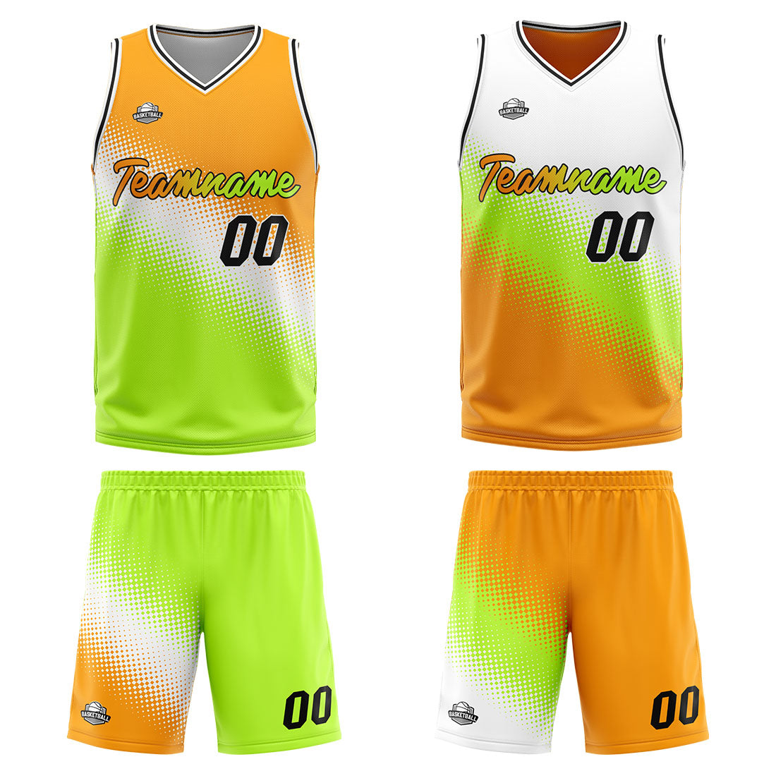 Benutzerdefinierte Reversible Basketball Jersey Personalisierte Print Name Nummer Logo Weiß-Grün-Gelb