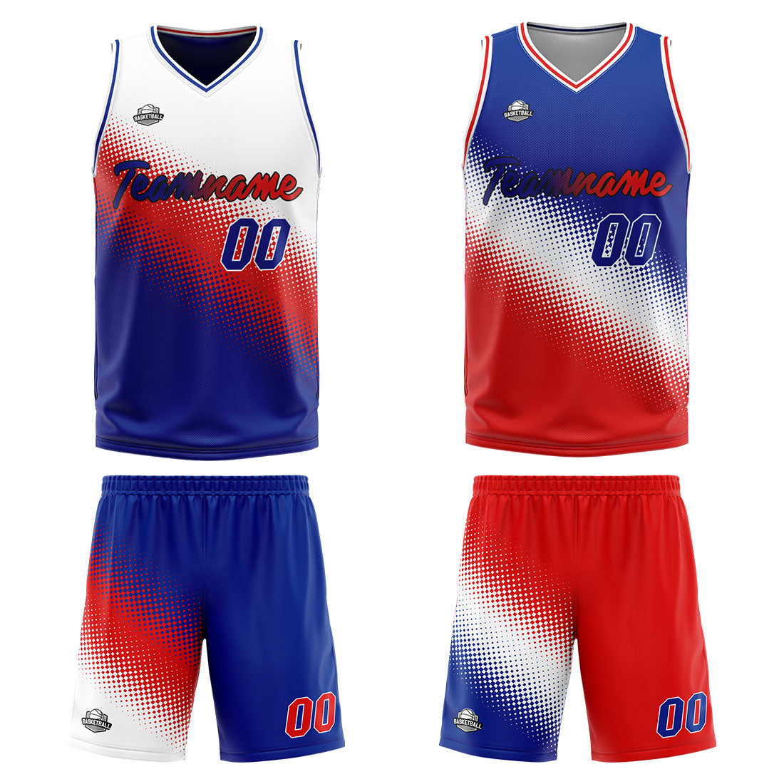 Benutzerdefinierte Reversible Basketball Jersey Personalisierte Print Name Nummer Logo Weiß-heißes Weiß-Rot-Royal
