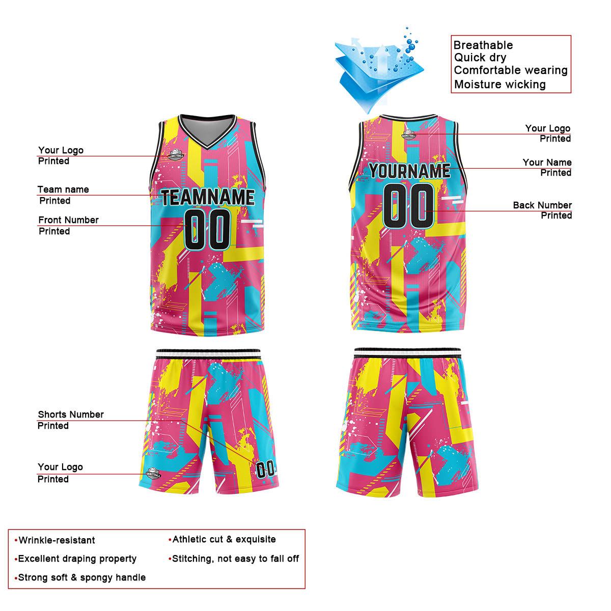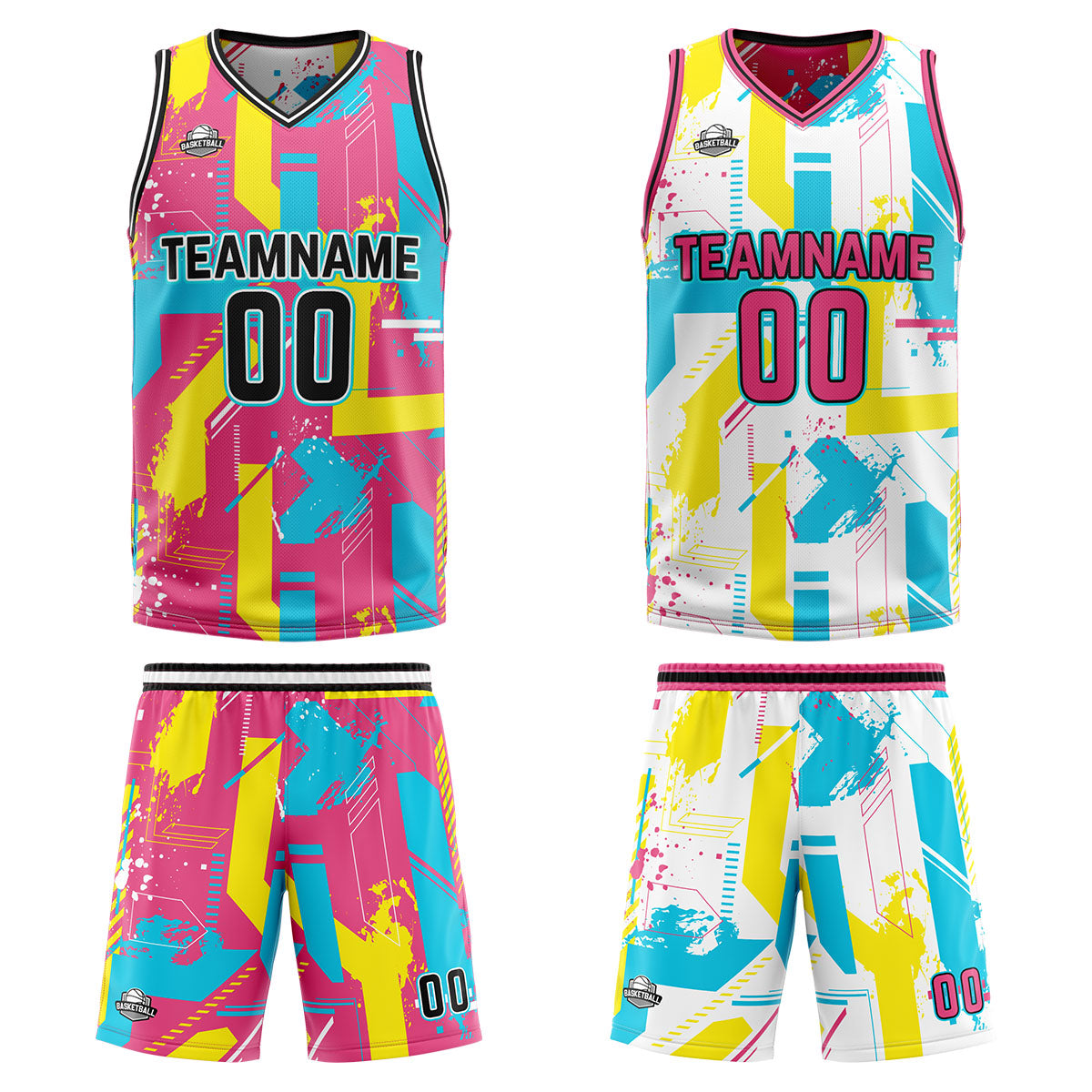 Benutzerdefinierte Rosa Gelb Reversible Basketball Jersey Personalisierte Print Name Nummer Logo