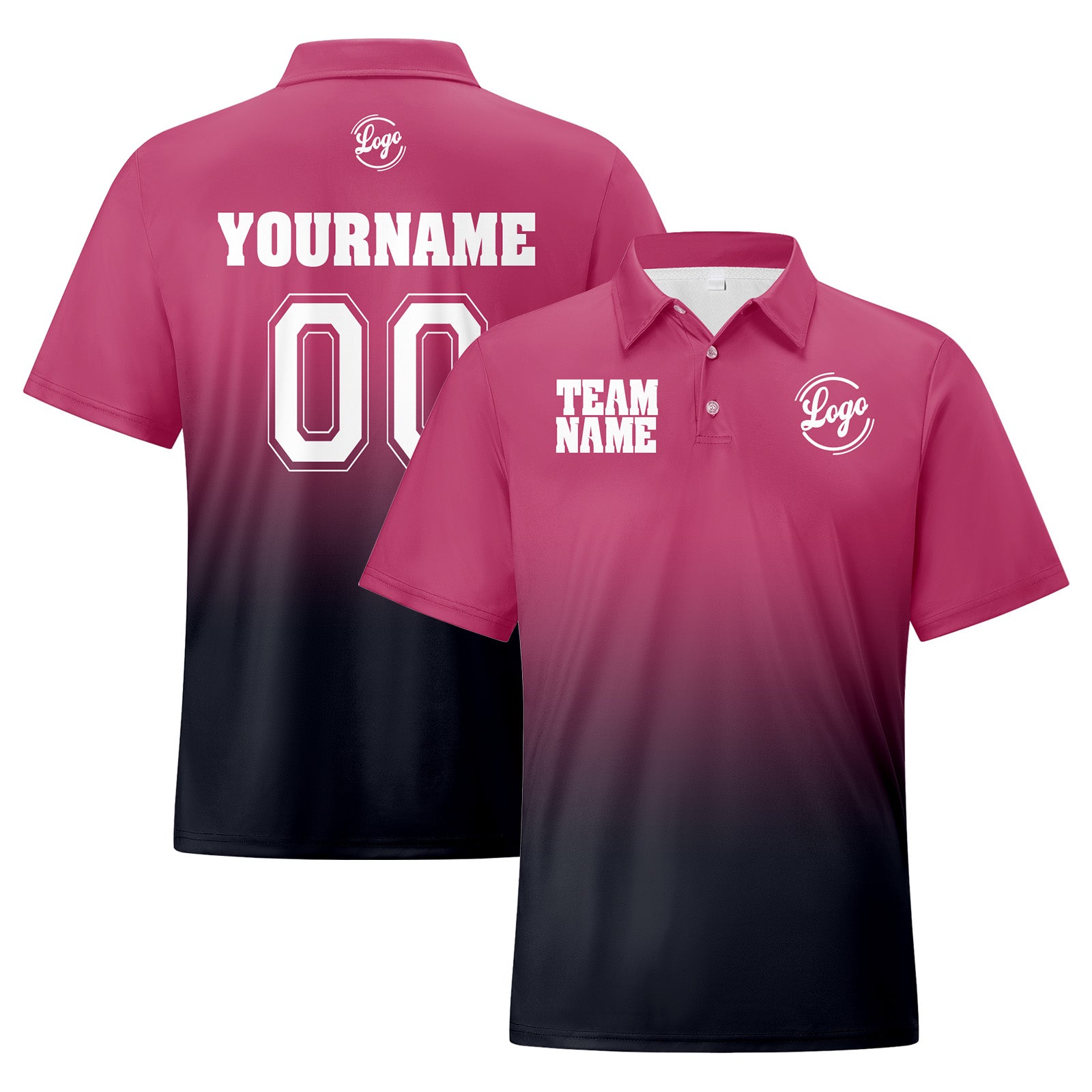 Benutzerdefinierte Rosa Grau Fußball Gradient Polo-Shirts Fügen Sie Ihr Einzigartiges hinzu Logo/Name/Nummer