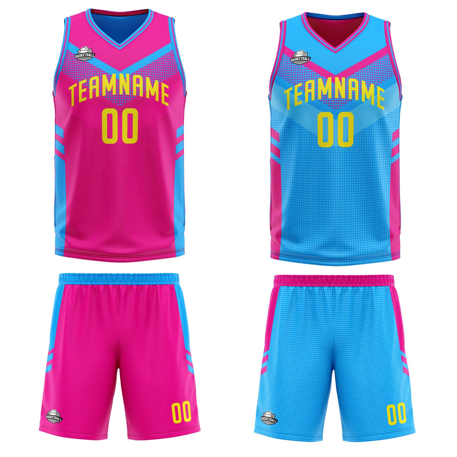 Benutzerdefinierte Rosa Hellblau Reversible Basketball Jersey Personalisierte Print Name Nummer Logo