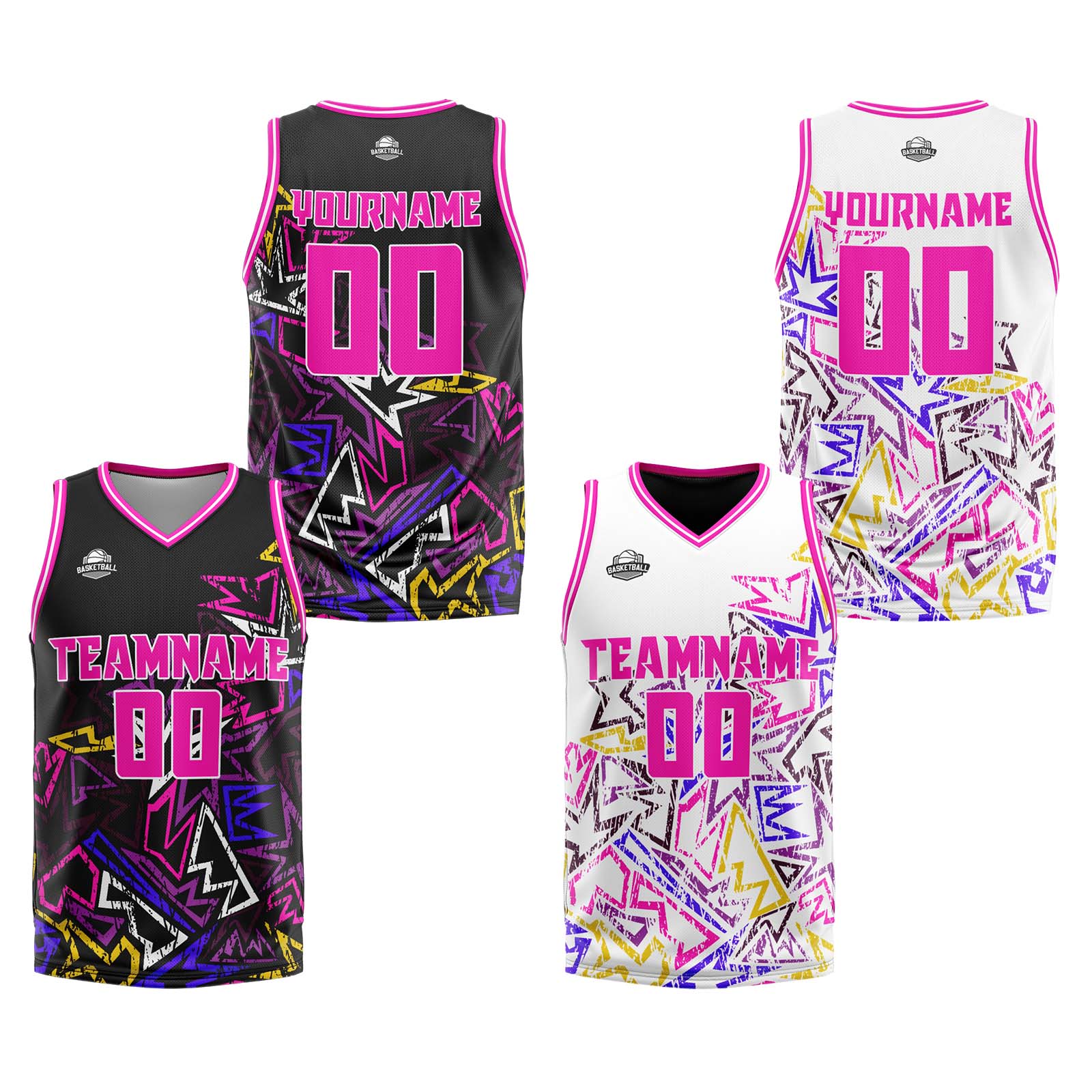 Benutzerdefinierte Rosa Reversible Basketball Jersey Personalisierte Print Name Nummer Logo