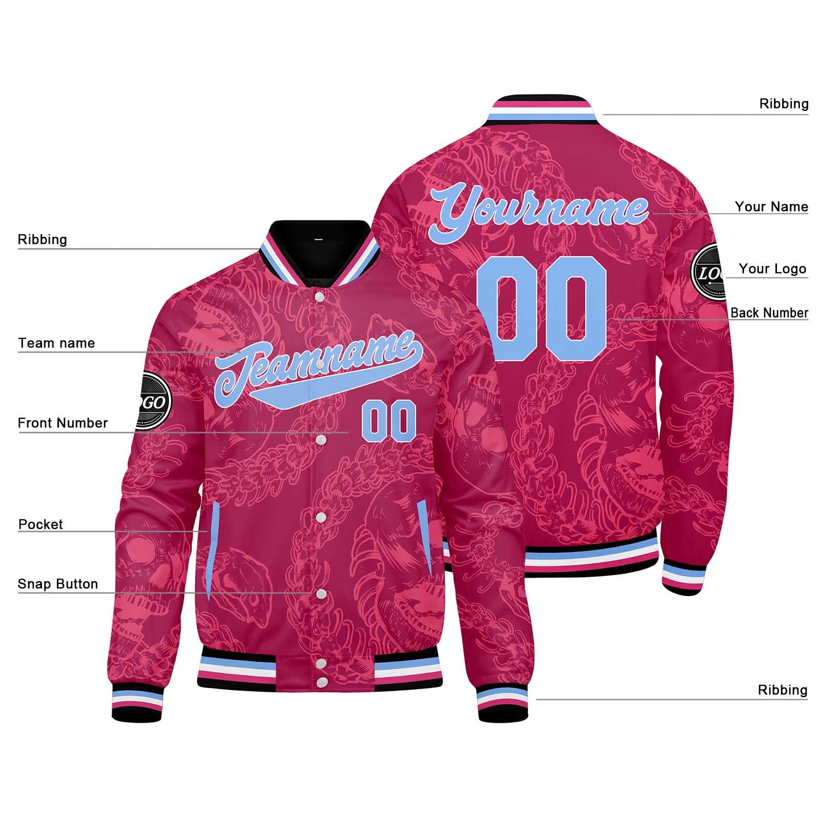 Benutzerdefinierte Rose Rot Varsity-Jacke. Letterman-Jacke für Männer, Frauen und Jugendliche
