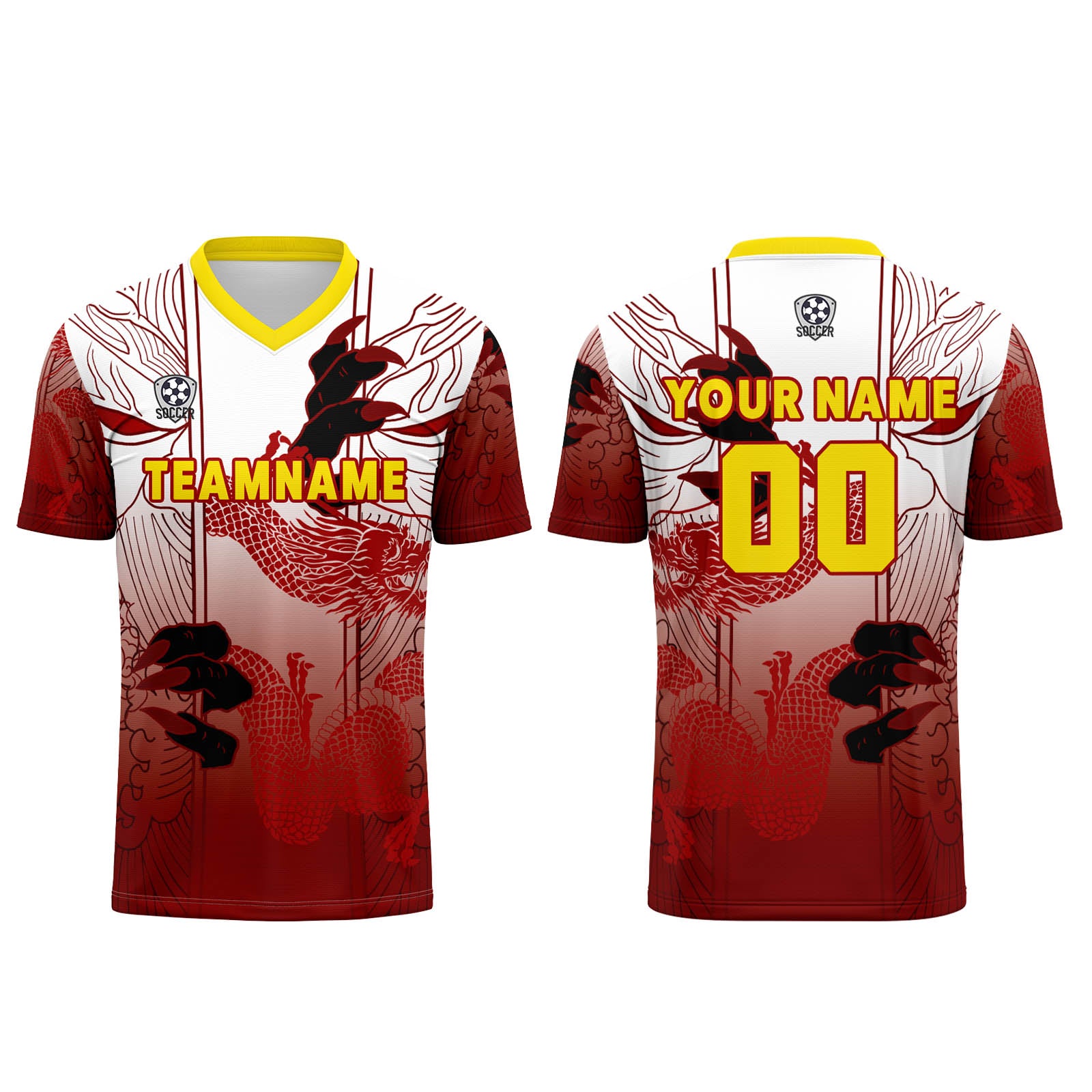 Benutzerdefinierte Rot Gelb Trikots für Männer Frauen Personalisierte Fußball Uniformen für Erwachsene und Kind