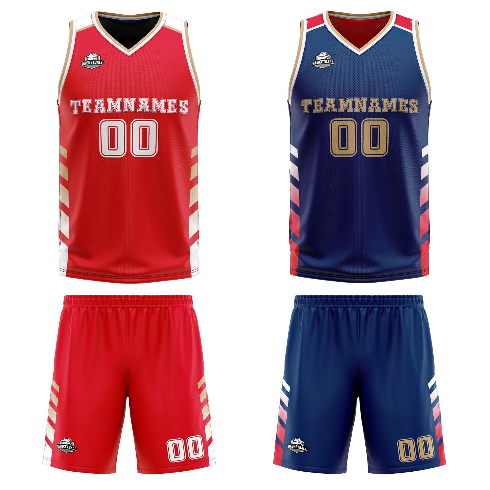 Benutzerdefinierte Rot-Marine-Gold Reversible Basketball Jersey Personalisierte Print Name Nummer Logo