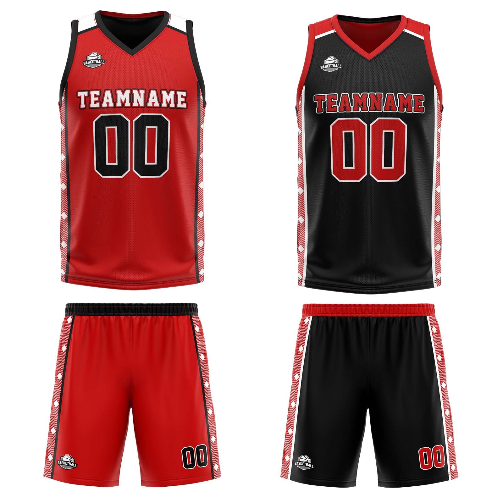 Benutzerdefinierte Rot Schwarz Reversible Basketball Jersey Personalisierte Print Name Nummer Logo