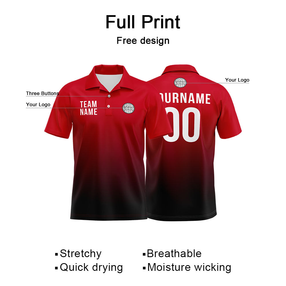 Benutzerdefinierte Rot Schwarz Weiß Fußball Polo-Shirts Fügen Sie Ihr Einzigartiges hinzu Logo/Name/Nummer