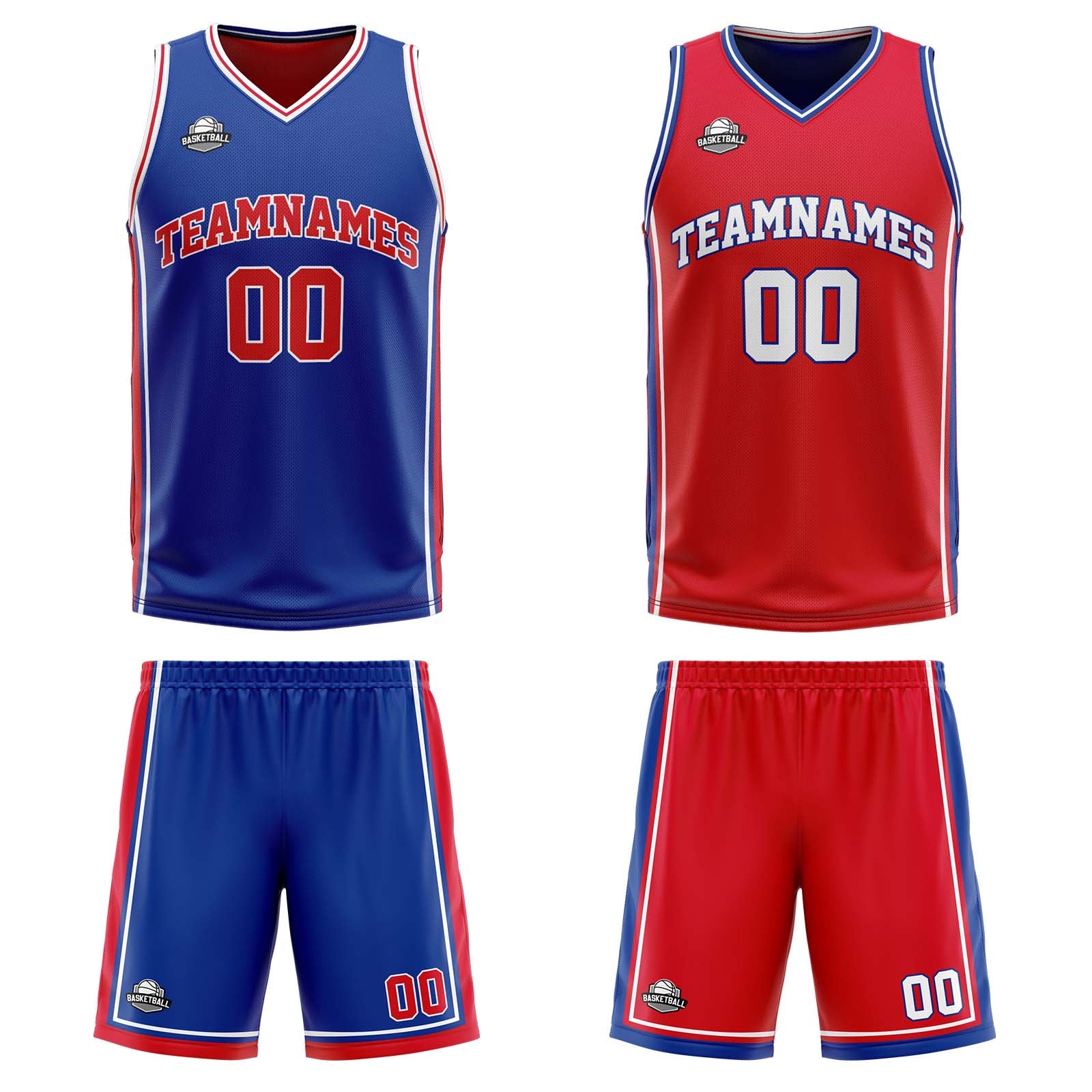 Benutzerdefinierte Royal Rot Weiß Reversible Basketball Jersey Personalisierte Print Name Nummer Logo