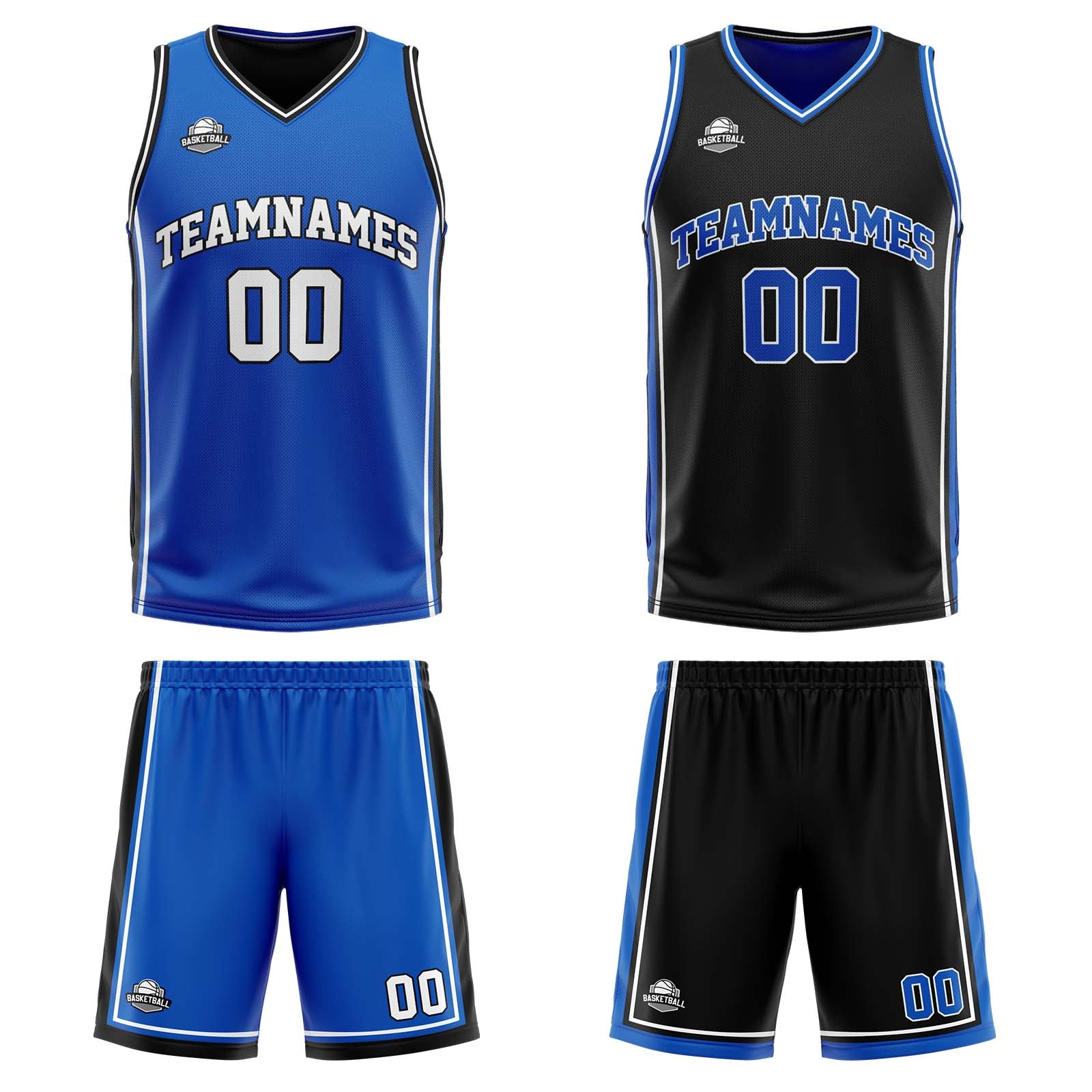 Benutzerdefinierte Royal Schwarz Reversible Basketball Jersey Personalisierte Print Name Nummer Logo