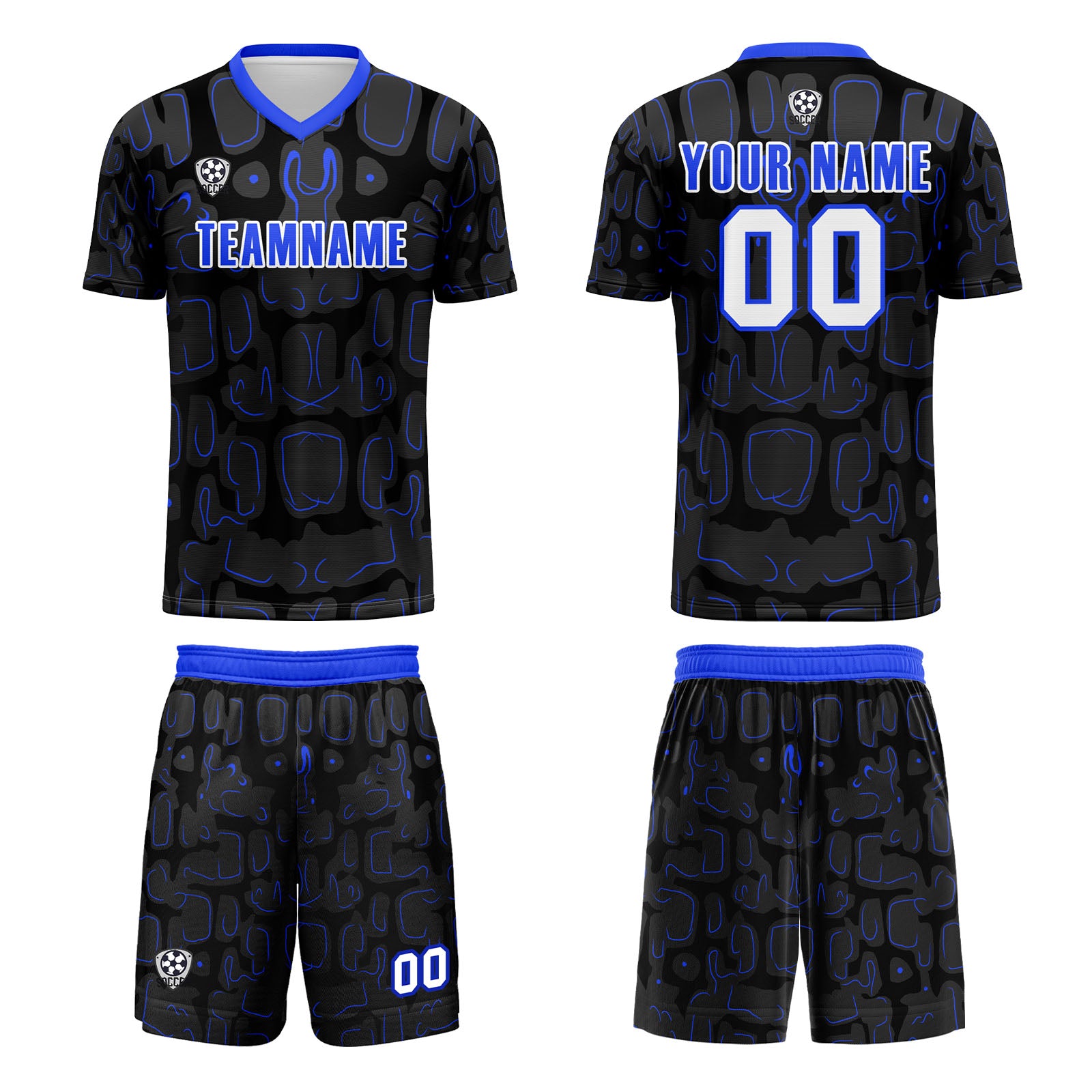 Benutzerdefinierte Schwarz Blau Fußball Trikots für Männer Frauen Personalisierte Fußball Uniformen für Erwachsene und Kind